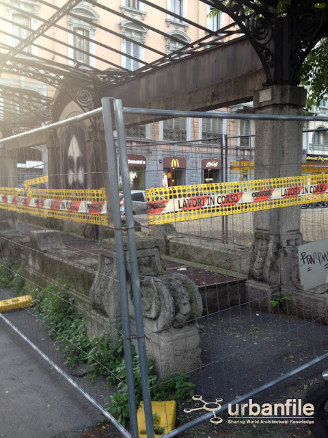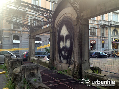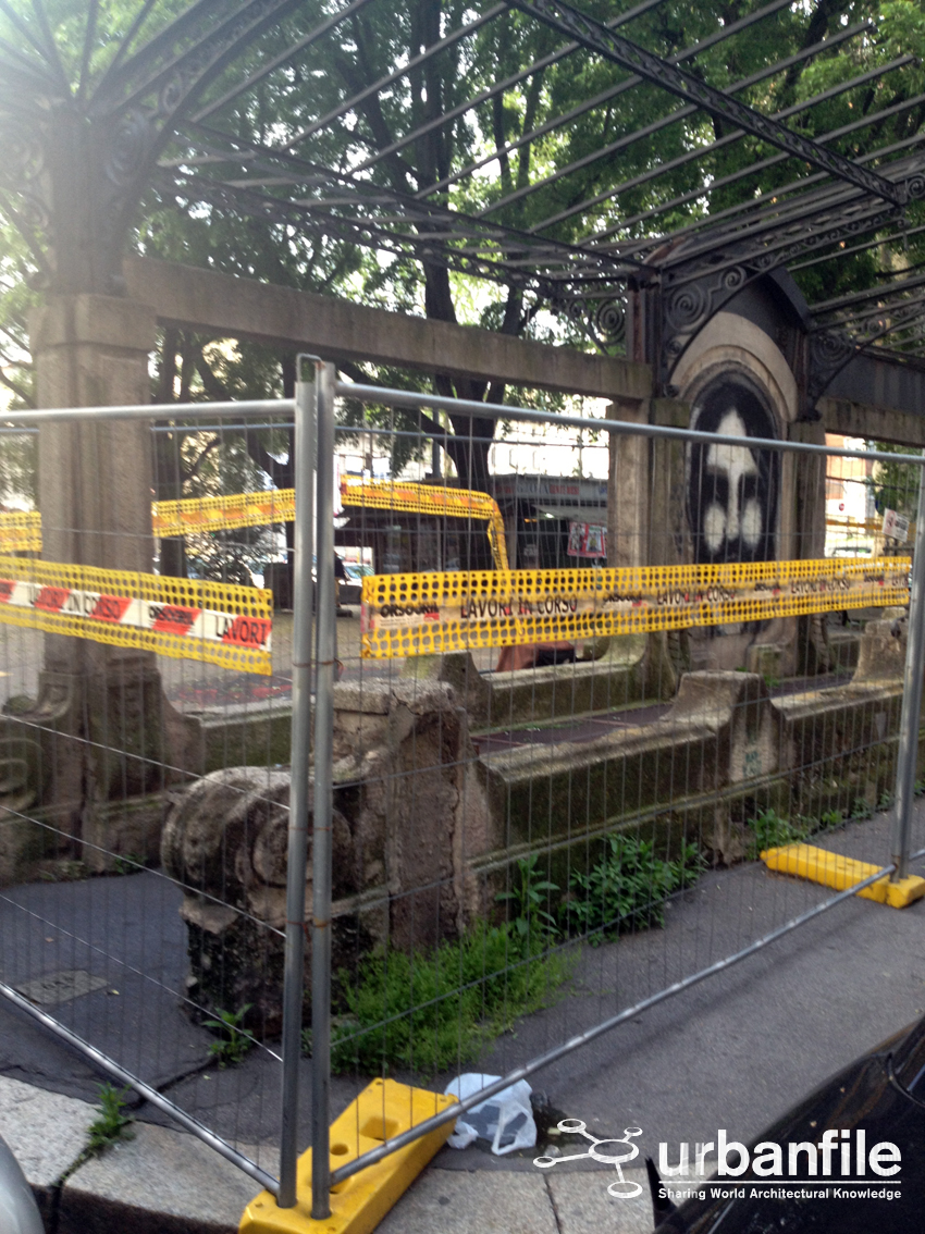 L’Albergo Diurno Venezia è in agonia. Nel sottosuolo di Piazza Oberdan, vicino ai Bastioni di Porta Venezia, si trovano i bagni pubblici costruiti nel 1925, su progetto di Marcello Troiani, in un delizioso stile Liberty. In superficie sono rimaste a testimoniarne la presenza del servizio pubblico, due colonne che celano i comignoli per le caldaie sotterranee e uno dei due ingressi, superstite. L’altro è stato eliminato senza riguardi quando venne creata l’uscita della metropolitana. Le strutture sono in cemento e metallo; la parte in cemento si sta sgretolando, infatti per sicurezza, le strutture esterne sono state transennate da qualche anno. Possibile non si trovi come riutilizzare questo bellissimo spazio? Stiamo aspettando che crolli, per finire nei ricordi di foto dalle sfumature retrò e tristi. Inoltre questo stato d’abbandono sta portando altro degrado, non solo architettonico, ma anche umano come si vede anche dalle foto.
