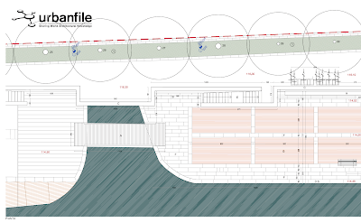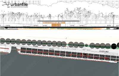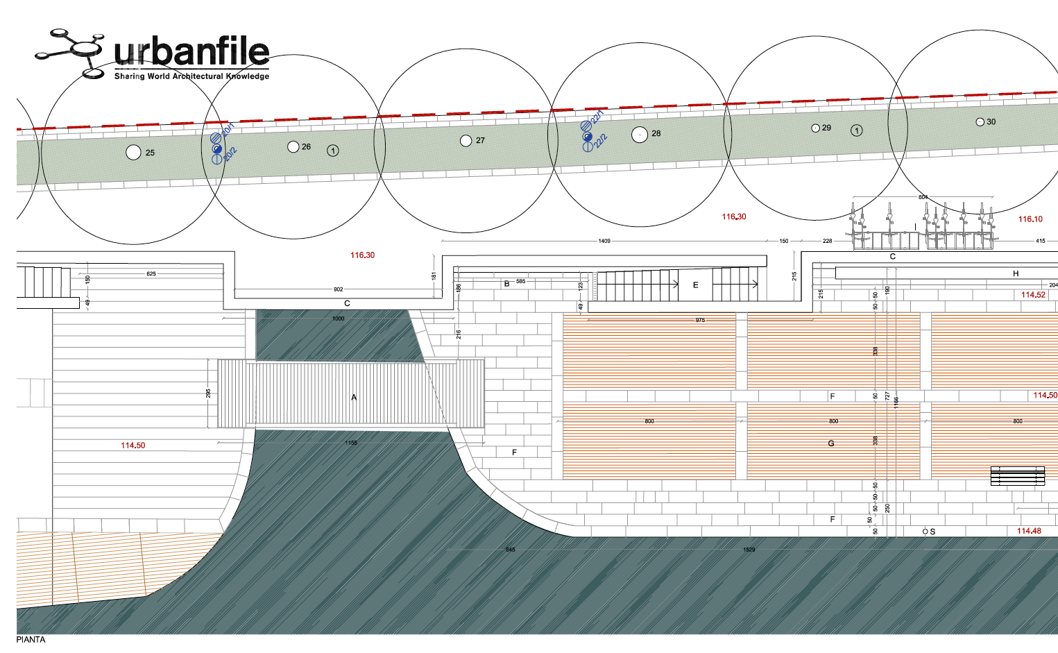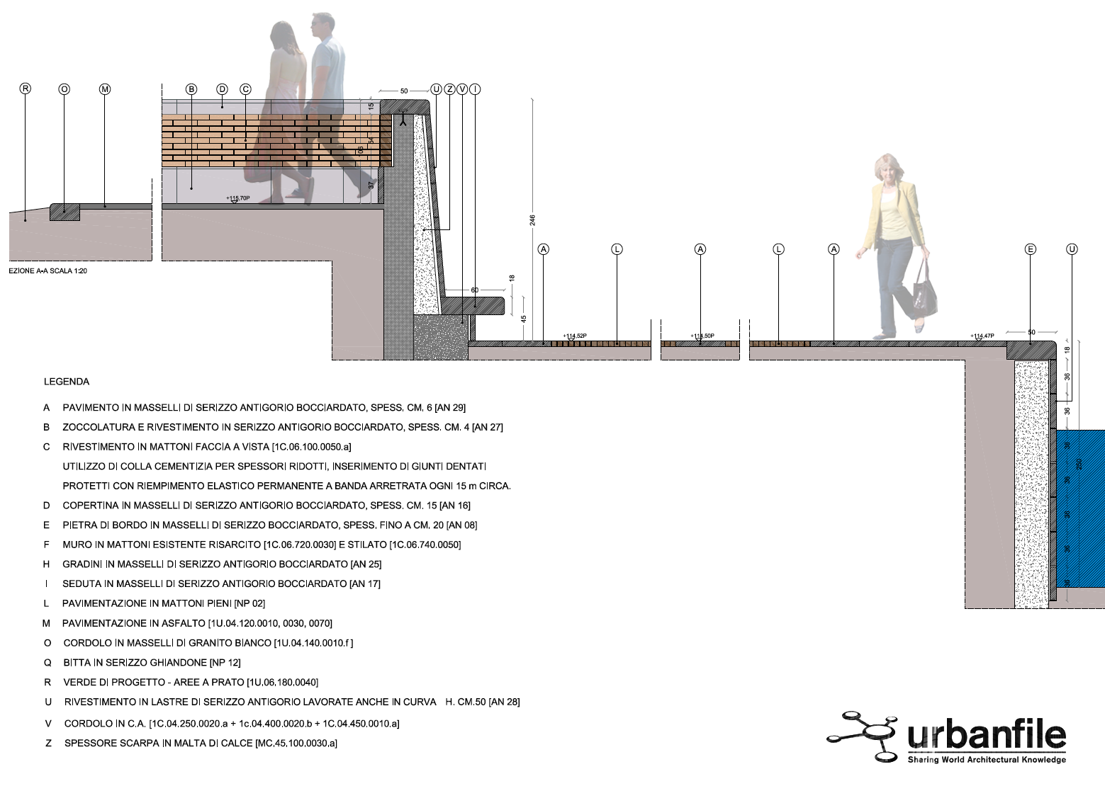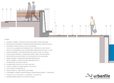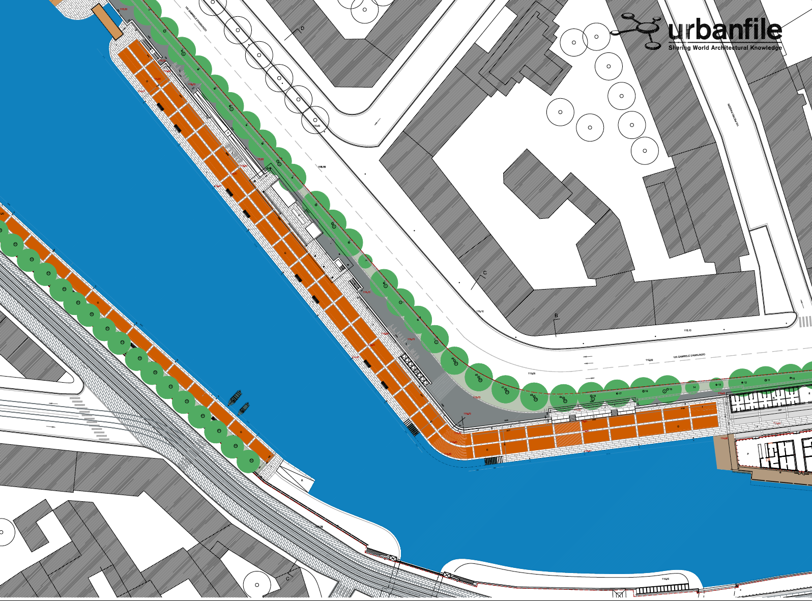 La sponda nord della Darsena sarà quella su cui si interverrà maggiormente. Ci sarà una scalinata Belvedere, collocata subito dopo il mercato: una serie di gradini che daranno la possibilità alla gente di sedersi e ammirare i due ponti che scavalcano i navigli Grande e Pavese. Segue il ripristino dell’originale sperone, a riprodurre l’angolo del bastione delle mura quattrocentesche, che curvando porta sul lato della banchina che piega in direzione di Porta Genova. Qui ci saranno le rampe e le scale per superare il dislivello con il viale e il chiosco, dove probabilmente verrà aperto un caffé. Proseguendo nella futura passeggiata, ci si imbatte in una passerella: questa a scavalcare la conca di Viarenna che verrà riportata alla luce. Le pavimentazioni della passeggiata saranno in cubetti di granito (sanpietrini), lastre in serizio antigorio e mattoni pieni; ci sarà anche parte della pavimentazione in doghe di legno composito inalterabile WPC (passerella e molo). Lungo il bordo verranno collocate anche diverse bitte per l’attracco di imbarcazioni. Le luci saranno in parte su palo (7 metri con due proiettori) e in parte realizzate con LED ad incasso nel pavimento a luce radente. Il marciapiede su viale Gabriele D’Annuzio sarà asfaltato. Anche in questo caso la mia unica preoccupazione riguarda tutte queste superfici che saranno sicuramente prese di mira dai soliti imbrattatori di muri.