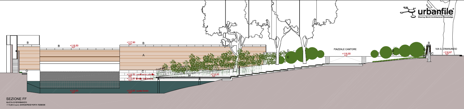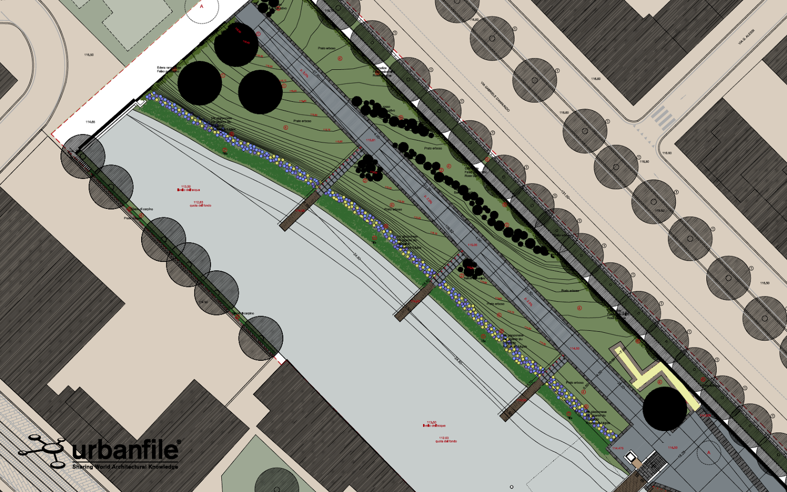 L’ultima scheda in cui ho suddiviso il progetto Darsena riguarda il giardinetto verso Piazzale Cantore (Porta Genova). Ora il lotto è occupato da strutture attinenti al ristorante e dalla rampa di accesso al molo. Una volta sgombrato lo spazio verrà convertito in un piccolo giardino, dove una passeggiata condurrà alla piazza Cantore. Lungo il percorso si troveranno pontili in legno che permetteranno la vista dell’acqua e dalla vegetazione da una prospettiva differente. Saranno piantate delle querce palustri, dei platani, salice arbustivo, carpino bianco, dei bagolaro, typha latifoglia, rose canine, stipa tenuissima, edera e altre piante tipiche della flora milanese.