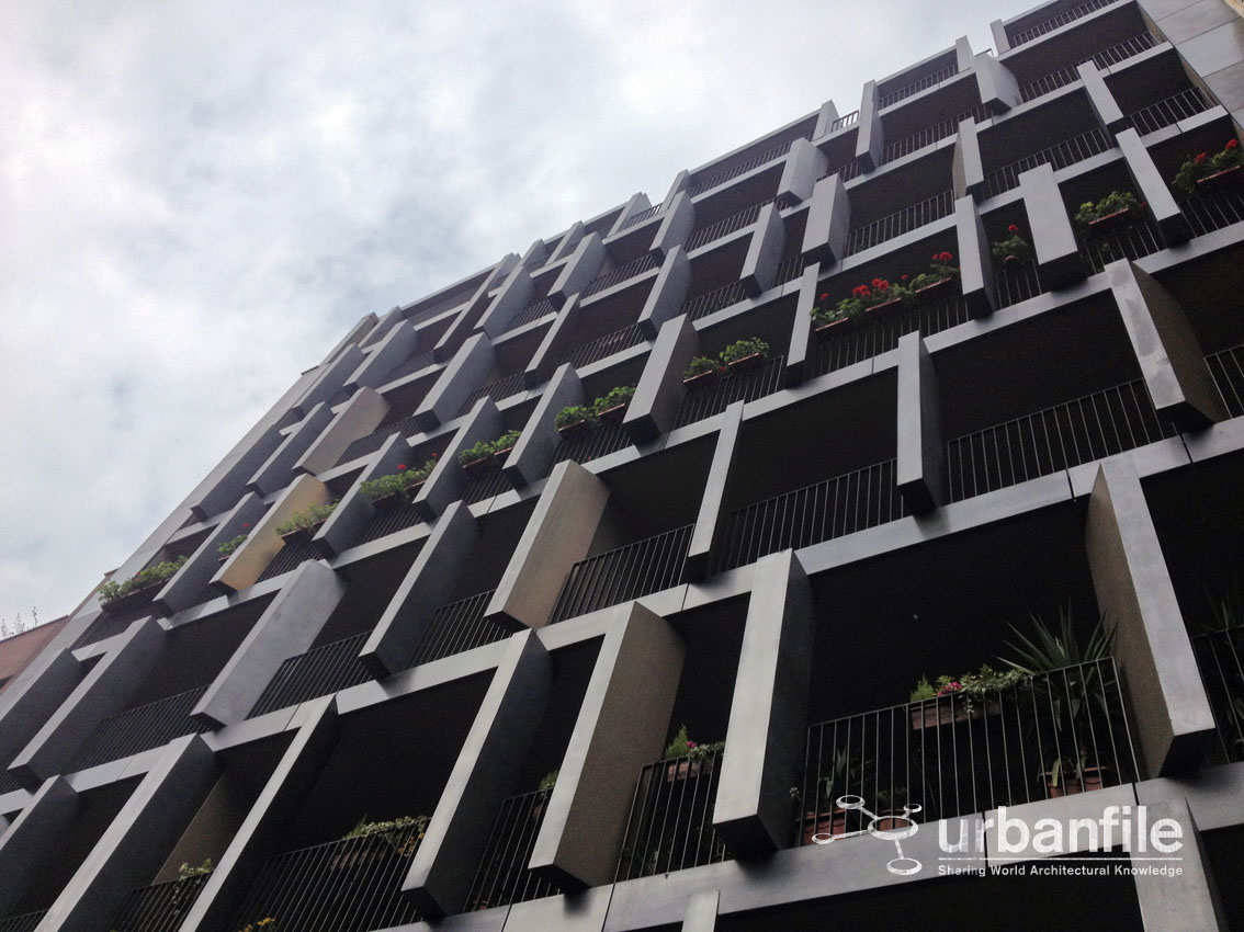 Nel corso del 2009, Archea è subentrata nel progetto per la costruzione di un edificio residenziale in via Maestri Campionesi, in una zona semicentrale di Milano. La rivoluzione del progetto operata dallo studio di architettura ha riguardato la facciata e le parti comuni. La facciata, l’elemento caratterizzante di quest’edificio, che si affaccia su via Maestri Campionesi, è a mio avviso molto interessante. I livelli sono segnati da una successione regolare di fasce orizzontali sovrapposte, a cui fanno da contrappunto delle lame verticali a posa irregolare, sfalsate da piano a piano e aggettanti verso l’esterno secondo inclinazioni diverse. Il risultato è un aspetto movimentato e originale all’insieme.