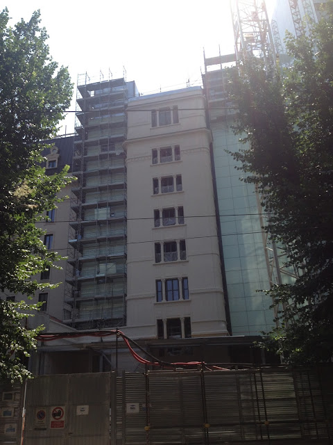 Sul retro dell’Excelsior Hotel Gallia stanno finalmente posando le pareti vetrate della parte nuova. Il risultato di questo connubio tra vecchio e nuovo non è ancora molto chiaro e non convince molti, compreso me.