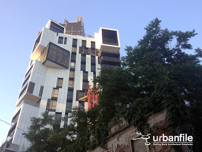 Finalmente è stata smontata la gru dalla torre Solea, mostrandocela in tutta la sua eleganza. Ho scattato alcune foto, anche una alla base che mostra il triangolo di terra che sicuramente diventerà un’aiuola.