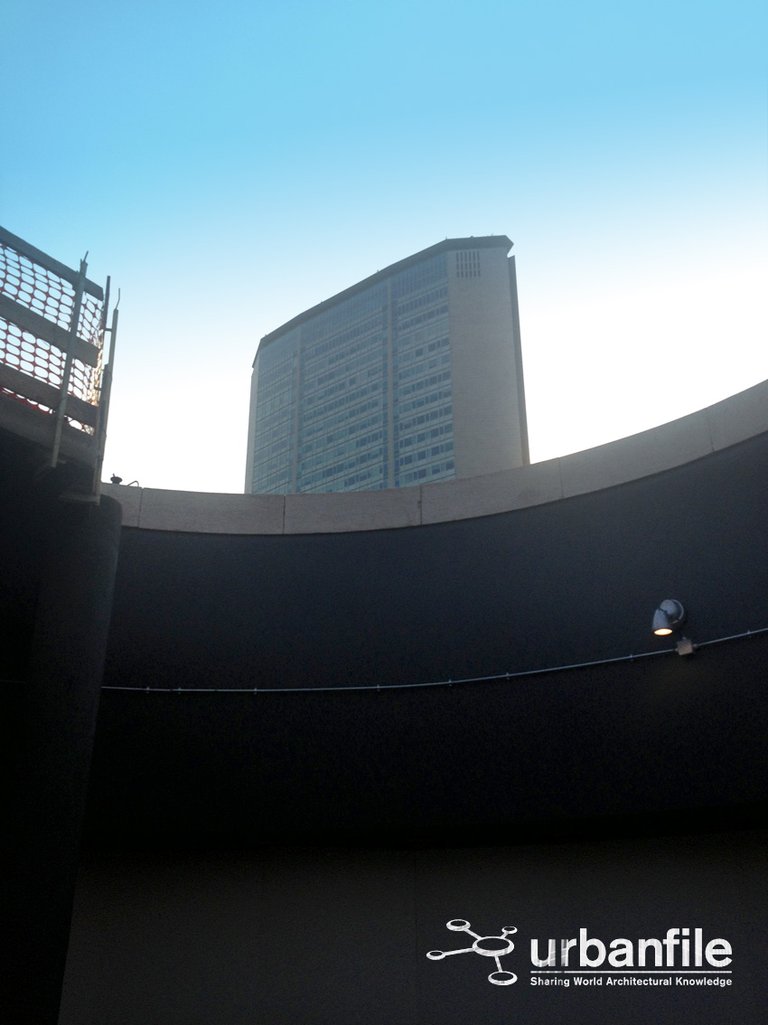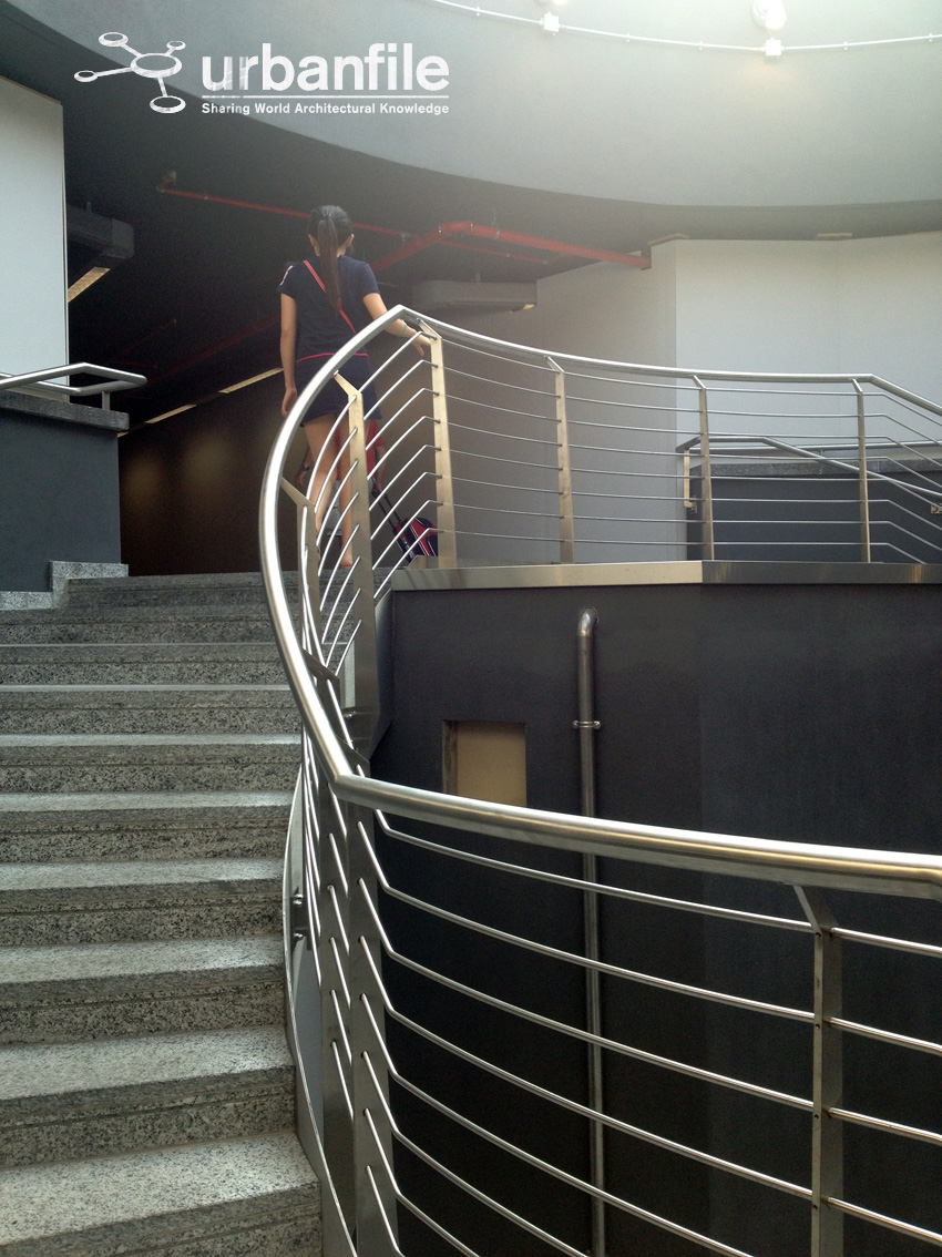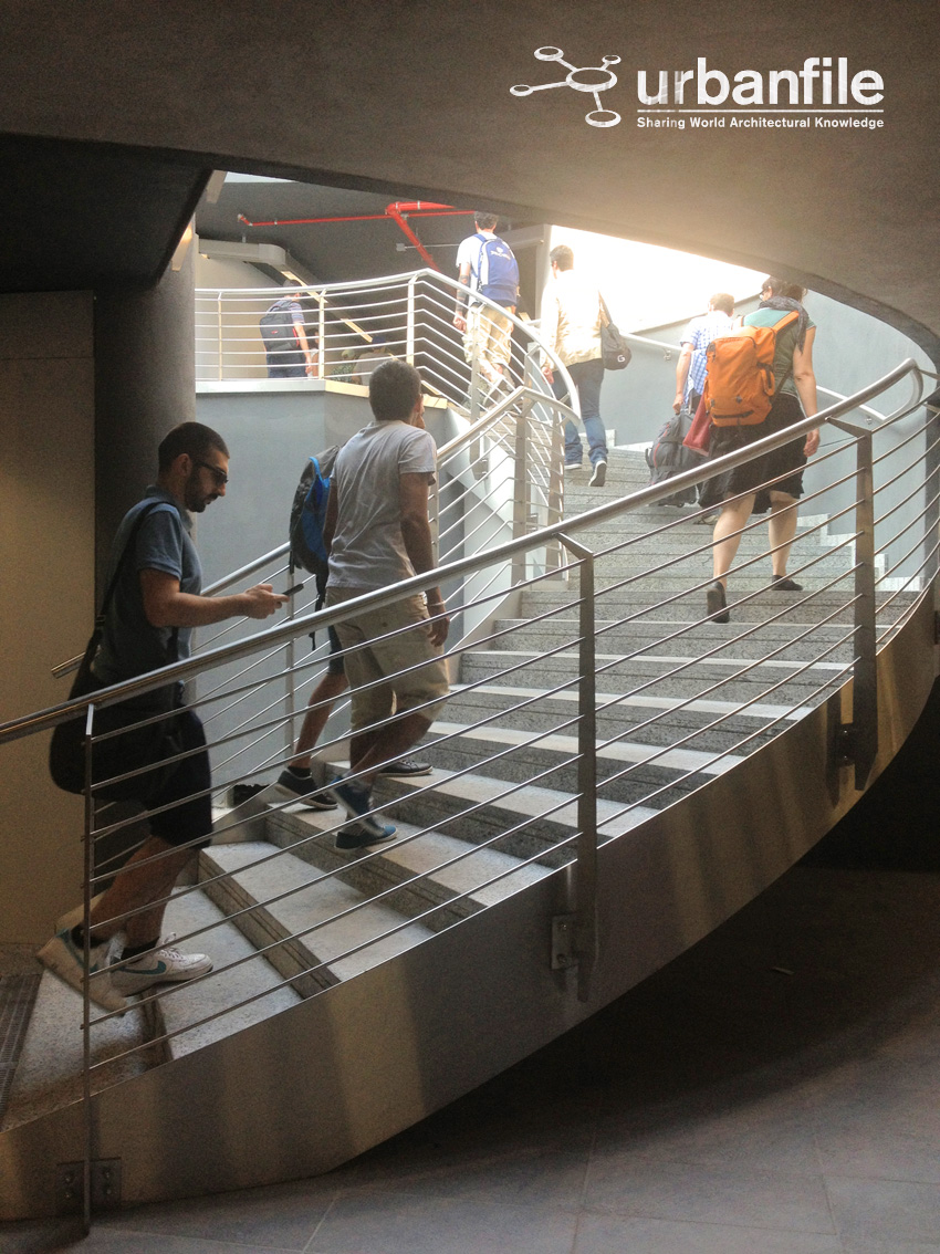 Prima impressione ottima: gli scalini in granito sembrano ben realizzati e così anche il corrimano e le ringhiere in acciaio. Manca ancora l’ascensore e il cilindro in vetro che lo contiene.
