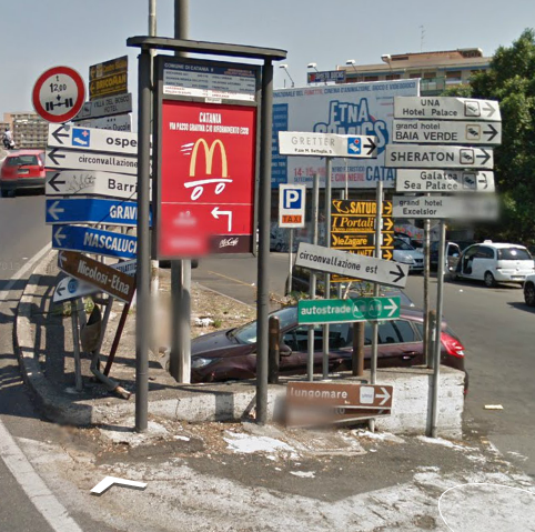 I catanesi si sono forse assuefatti a una situazione di cui pare nessuno si renda conto, ma basterebbe notare le reazioni dei forestieri o girare per le strade di una qualsiasi altra, comunissima città civile per rendersi conto di come a Catania lo stato della segnaletica verticale sia penoso. Non si parla, qui, di chissà quale livello di architettura e urbanistica: si parla di banalissime indicazioni stradali.