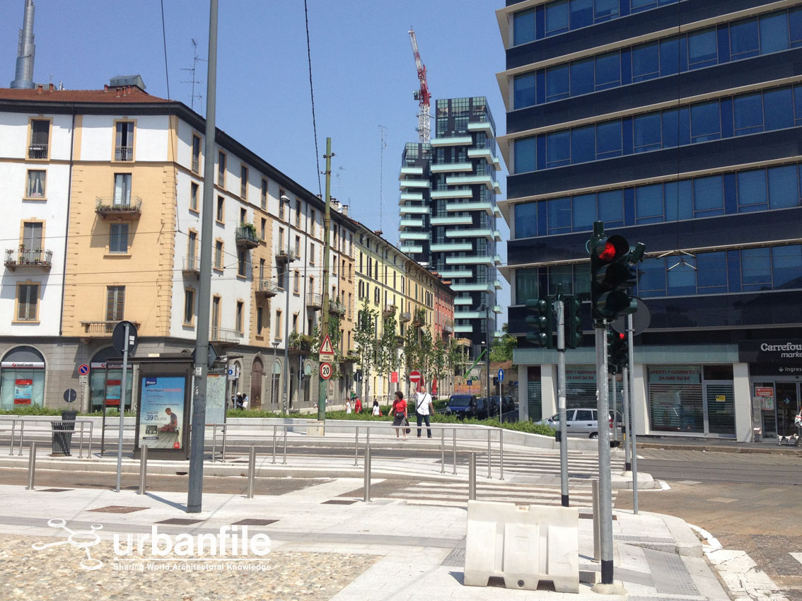 La torre Aria, di 17 piani, creata dallo Studio Arquitectonica di Miami, è la sorellina minore del trittico formato dalla più imponente Torre Solaria e dalla bellissima Torre Solea di Caputo. Aria mi pare la meno riuscita delle tre: è la copia esatta della Torre Solaria ma in versione ridotta. Un peccato. Avrebbero potuto progettarla leggermente diversa, con un altro disegno o altri colori/materiali, avrebbe avuto un impatto migliore.