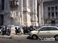 Che dire poi dei bei fari che da terra dovrebbero illuminare la facciata, ma che vengono invece utilizzati come improvvisate panchine o cestini per i rifiuti? E che dire dei motorini e delle auto parcheggiate ovunque, senza alcun criterio, davanti alle fontane inesorabilmente spente?