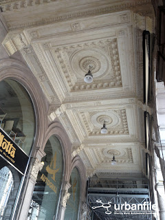 Sono state smontate le impalcature ai portici settentrionali, per ora solo sul lato destro della Galleria. Si possono finalmente ammirare, nel loro splendente candore gli straordinari stucchi originali.