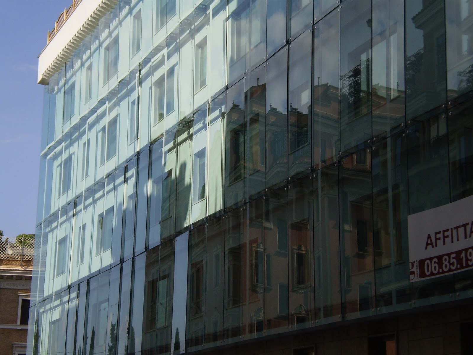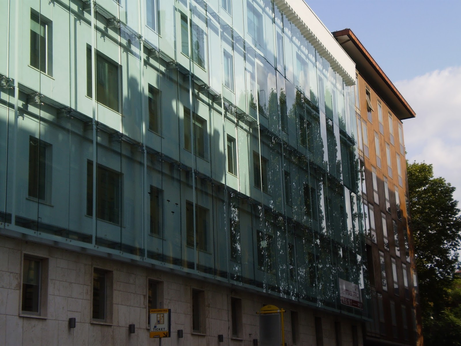 Recladding in via Puccini 11 Settembre 2013 di admin Ai posteri l’ardua sentenza.In sostituzione dell’anonima facciata anni ’60 campeggia ora un’uniforme superficie vetrata: