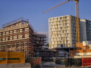 1. Non saprei. Posso fare una supposizione: dal momento che c'è un buco nel cantiere, credo che abbiano rivisto il progetto e circoscritto alcuni dei reperti trovati, ma è solo una supposizione!