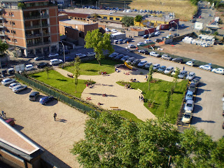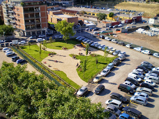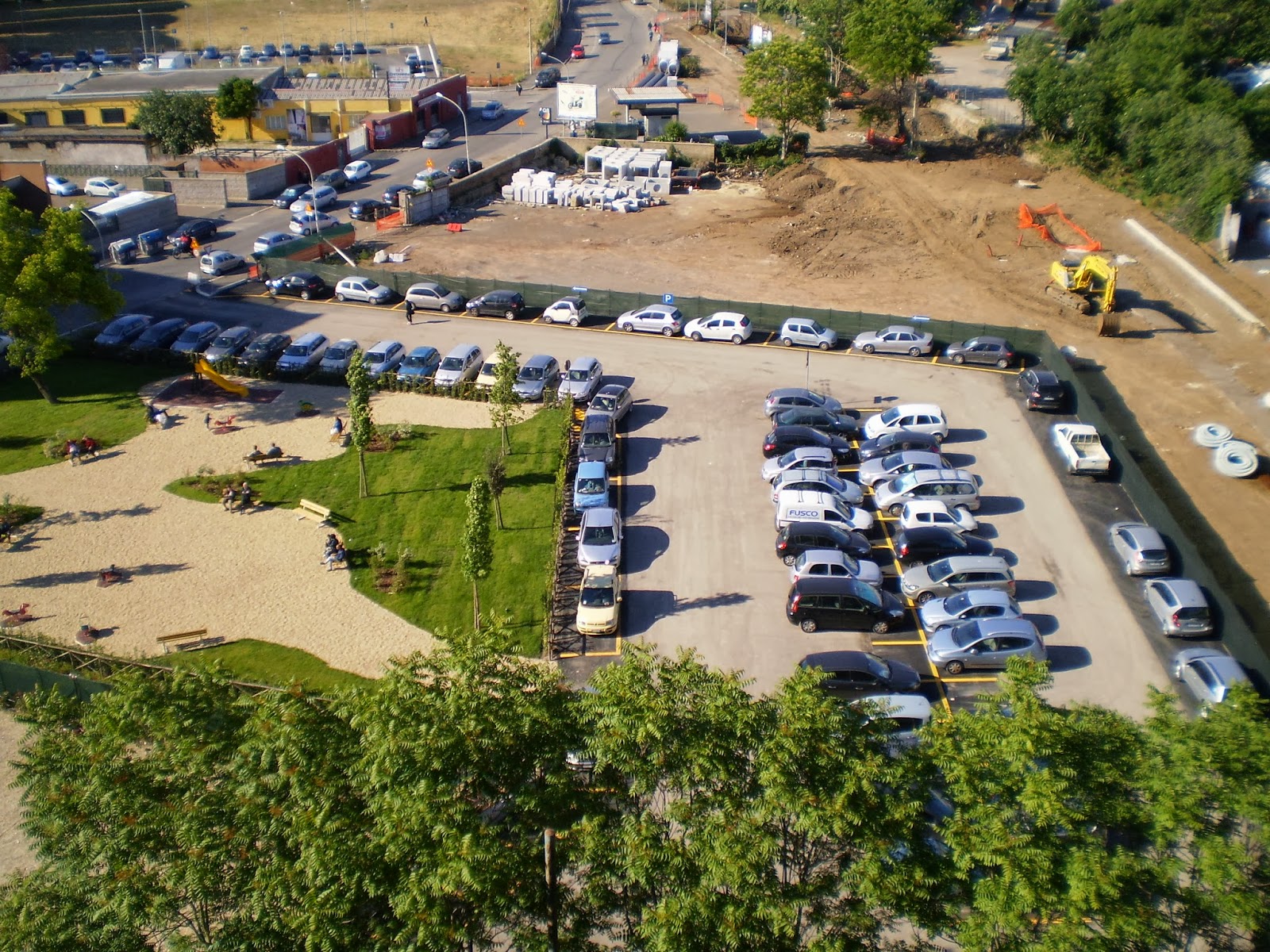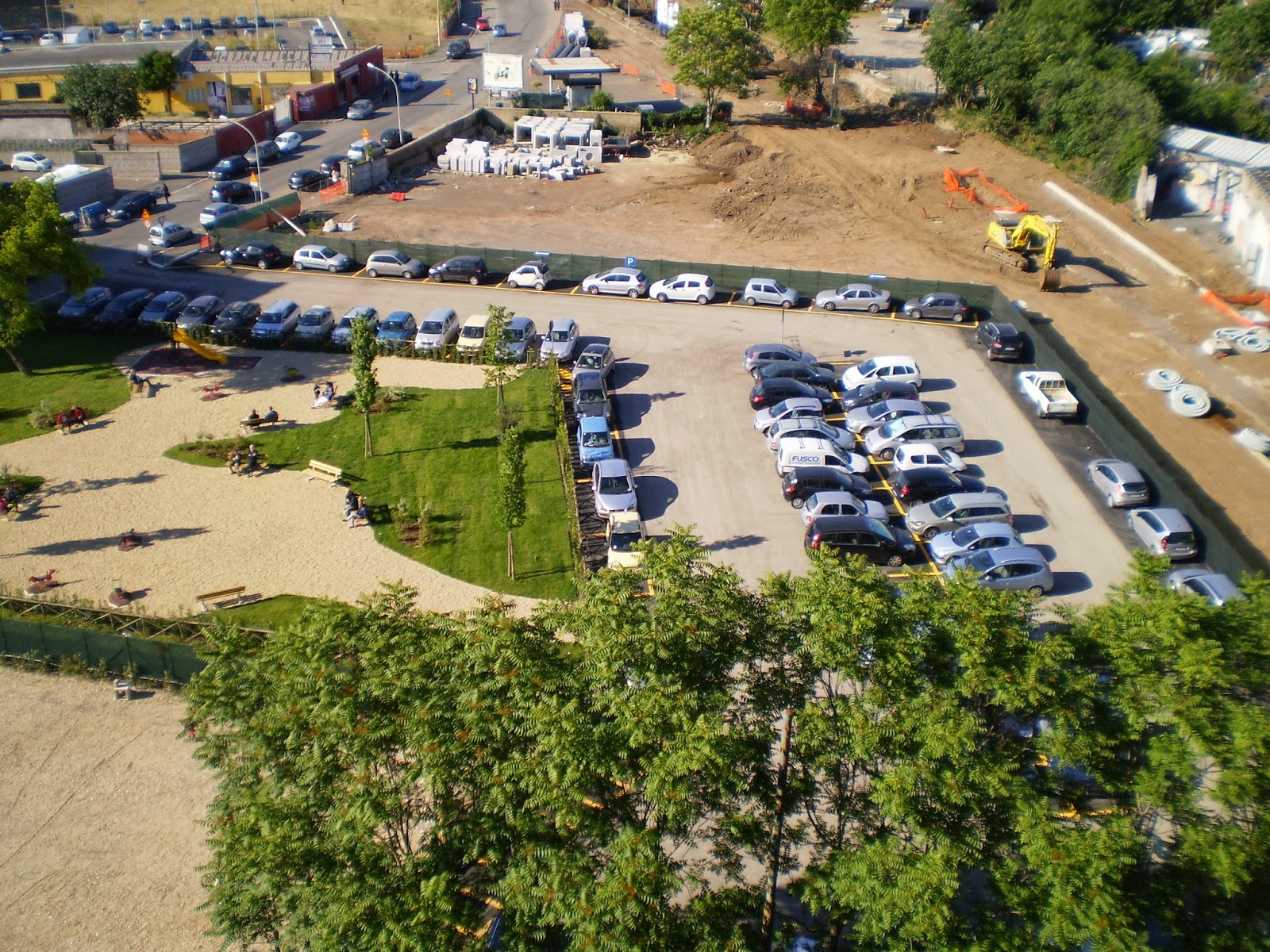 Il parco è ancora circondato da un parcheggio triste e polveroso, ma dovrà essere risistemato con la conclusione dei lavori per la nuova viabilità.