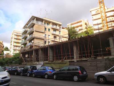 Ecco alcune foto del cantiere, fermo, fermissimo, che più fermo non si può. Nel cartello non è indicata nessuna data di inizio e fine attività.