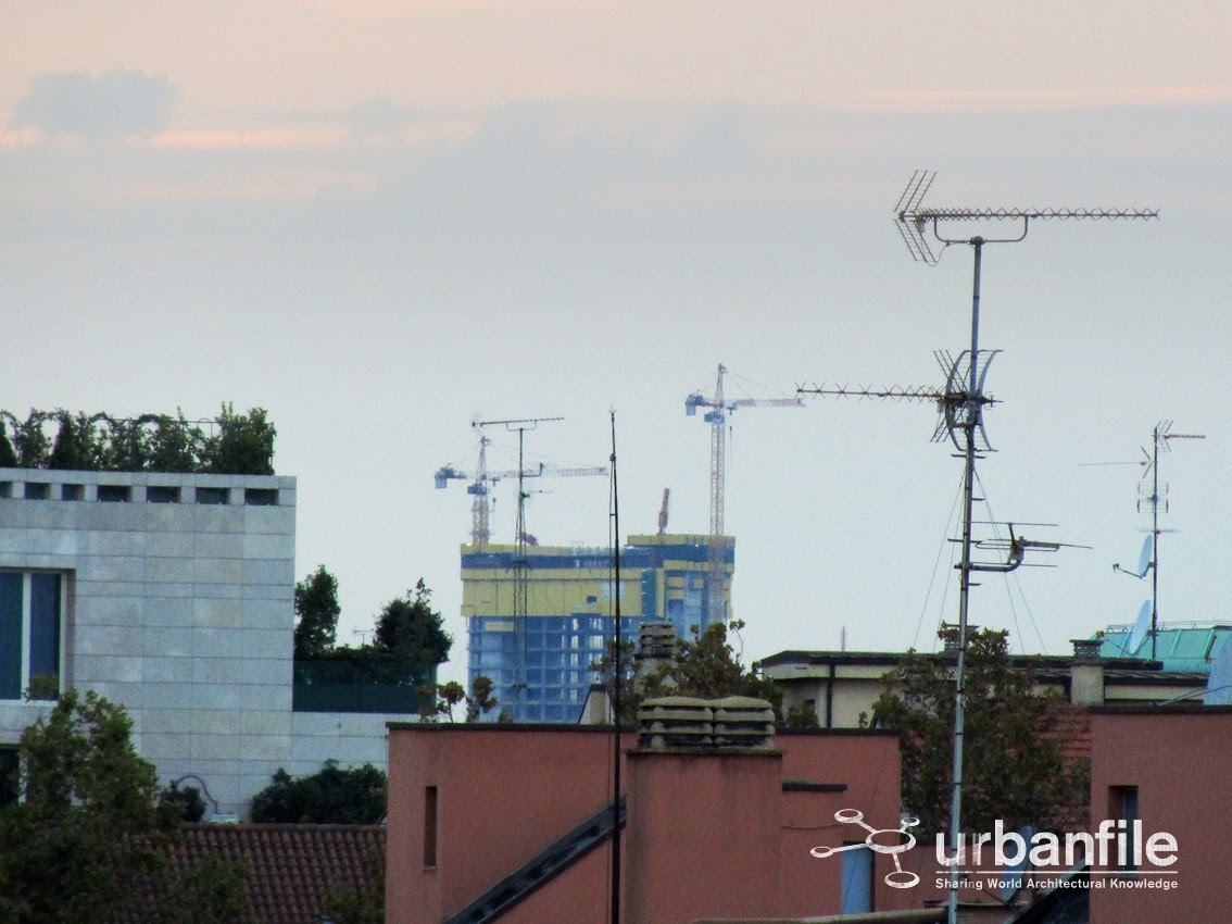 Girando per la città, ecco che la costruenda torre il Dritto di Arata Isozaki che come avevamo già visto in un precedente post si inizia ormai a vedere in vari punti della città. Qui qualche immagine dall’alto (dalla Torre Pelli/Unicredit), dalla zona QT8, dal parco delle Cave a Baggio o da piazza Sempione, dove si trova l’Arco della Pace.