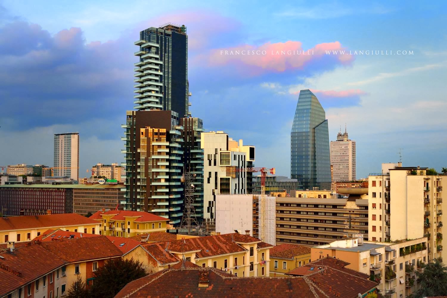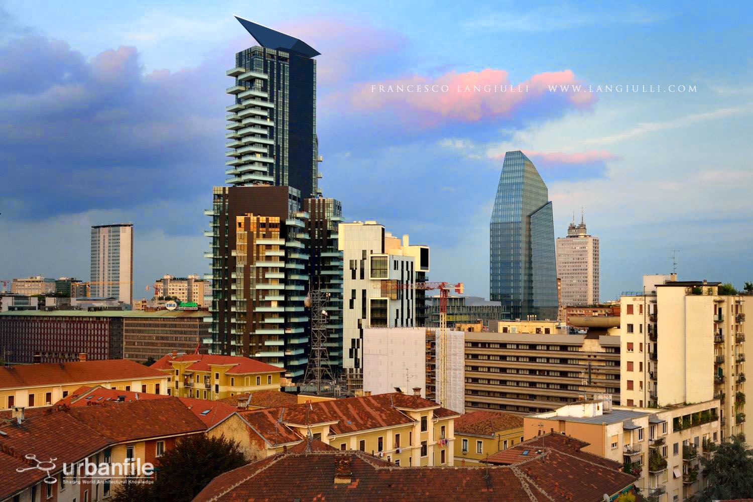 Come è stata conclusa la sommità della torre Solaria, francamente non mi soddisfa molto: un cubotto per i locali tecnici (vano ascensori, scale e altro) e un comignolo mi sembrano una soluzione banale per un progetto così prestigioso. Ho così provato a realizzare dei fotomontaggi aggiungendo forme diverse a completamento della torre, naturalmente sono solo esempi di alcune potenziali alternative. Il tutto montato su una straordinaria foto di Francesco Langiulli