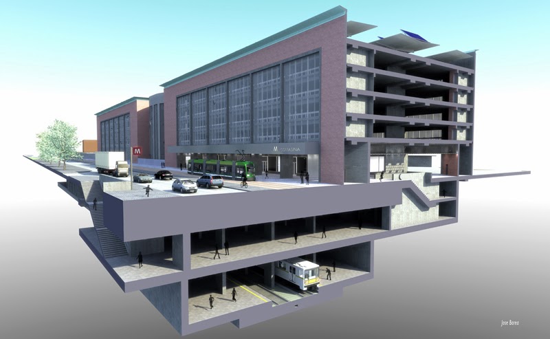 Tra gli aspetti interessanti, il progetto della stazione Comasina: uno schema di superstazione a due livelli sotterranei e sei livelli in superficie che integrino la stazione della metropolitana M3, il capolinea della metrotranvia, un parcheggio multipiano e possibilmente un centro commerciale. L’impatto è di sicuro effetto, compresa la piazza che si creerebbe presso la stazione (nel rendering è presente anche un maxischermo di un certo fascino). Augurandoci che venga realizzata.