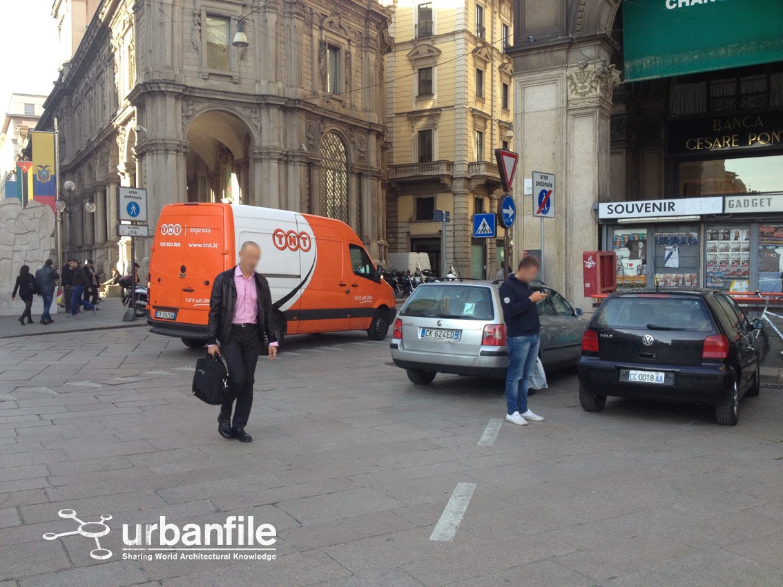 Piazza del Duomo è da più di vent’anni un’area prevalentemente pedonale. Eppure, per qualcuno, è tuttora un ottimo luogo dove posteggiare il proprio mezzo. Sul lato settentrionale, infatti, quasi all’angolo con Via Mengoni, si trovano puntualmente auto parcheggiate. Posso capire il temporaneo stazionamento di autoveicoli per ragioni di scarico e carico o per qualche altra eccezionale occasione, ma questo lato della piazza è praticamente un incomprensibile parking senza limiti di tempo.