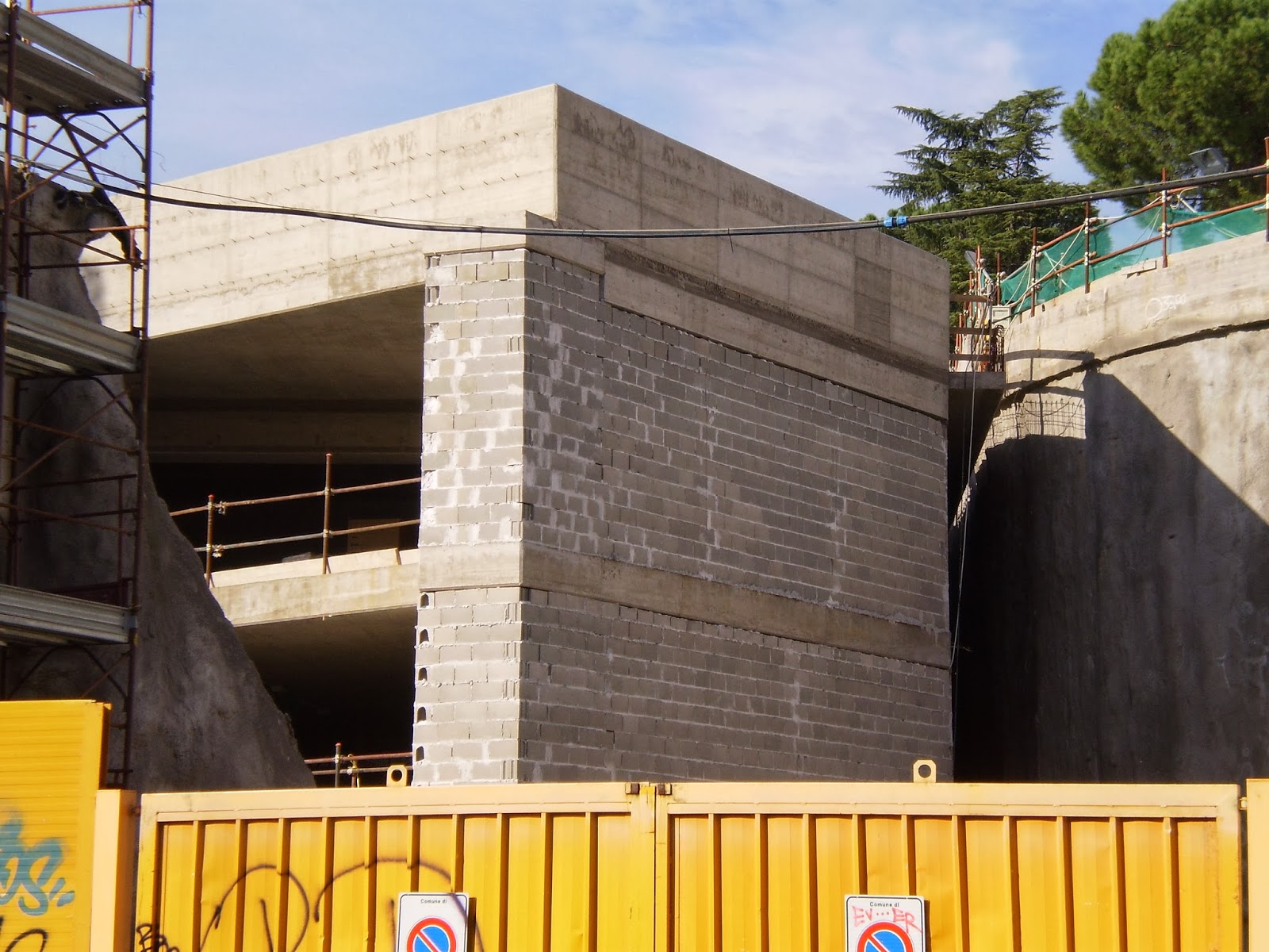Durante la costruzione è stata completamente sbancata una collinetta; per ora si procede con la costruzione delle strutture che dovrebbero ospitare il parcheggio e l’accesso al mezzanino. In sintonia con le altre stazioni della B1, anche questa ha una stazza notevole.