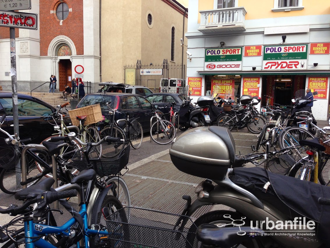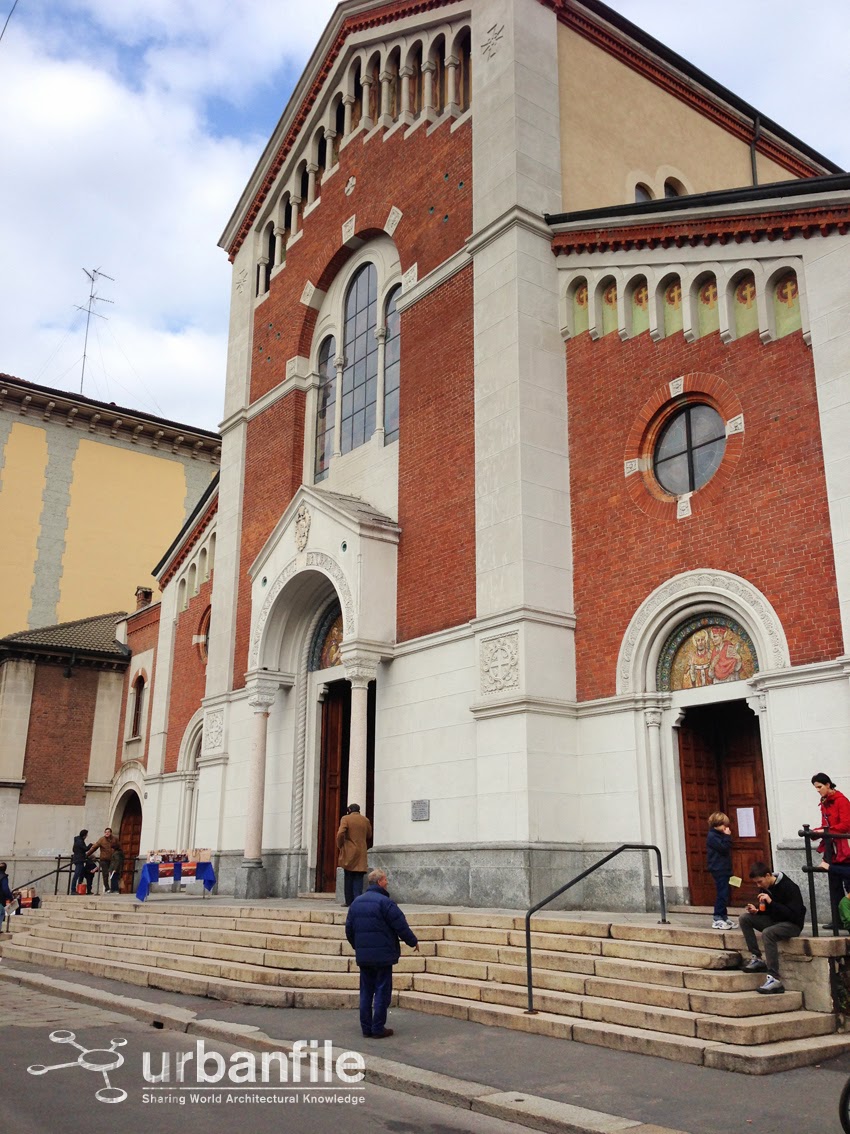 San Pietro in Sala è una chiesa eclettica-neoromanica, progettata dall’ingegniere Antonio Casati e dell’architetto Oreste Benedetti, che venne consacrata il 28 giugno 1924. La costruzione sostituiva una più antica chiesetta, risalente al 1200 e poi rifatta nel 1500, eretta nel piccolo borgo appena fuori le mura di Milano. Oggi la Piazza antistante porta il nome del grande musicista Richard Wagner. Su un lato della piazza si trova un mercato coperto dalle forme discutibili, mentre proprio davanti alla chiesa troviamo addirittura un parcheggio. Auto, motorini e biciclette fanno da costante parterre al sagrato. Possibile che anche qui non si sia mai pensato di rendere questo spazio un po’ più vivibile e a misura d’uomo?