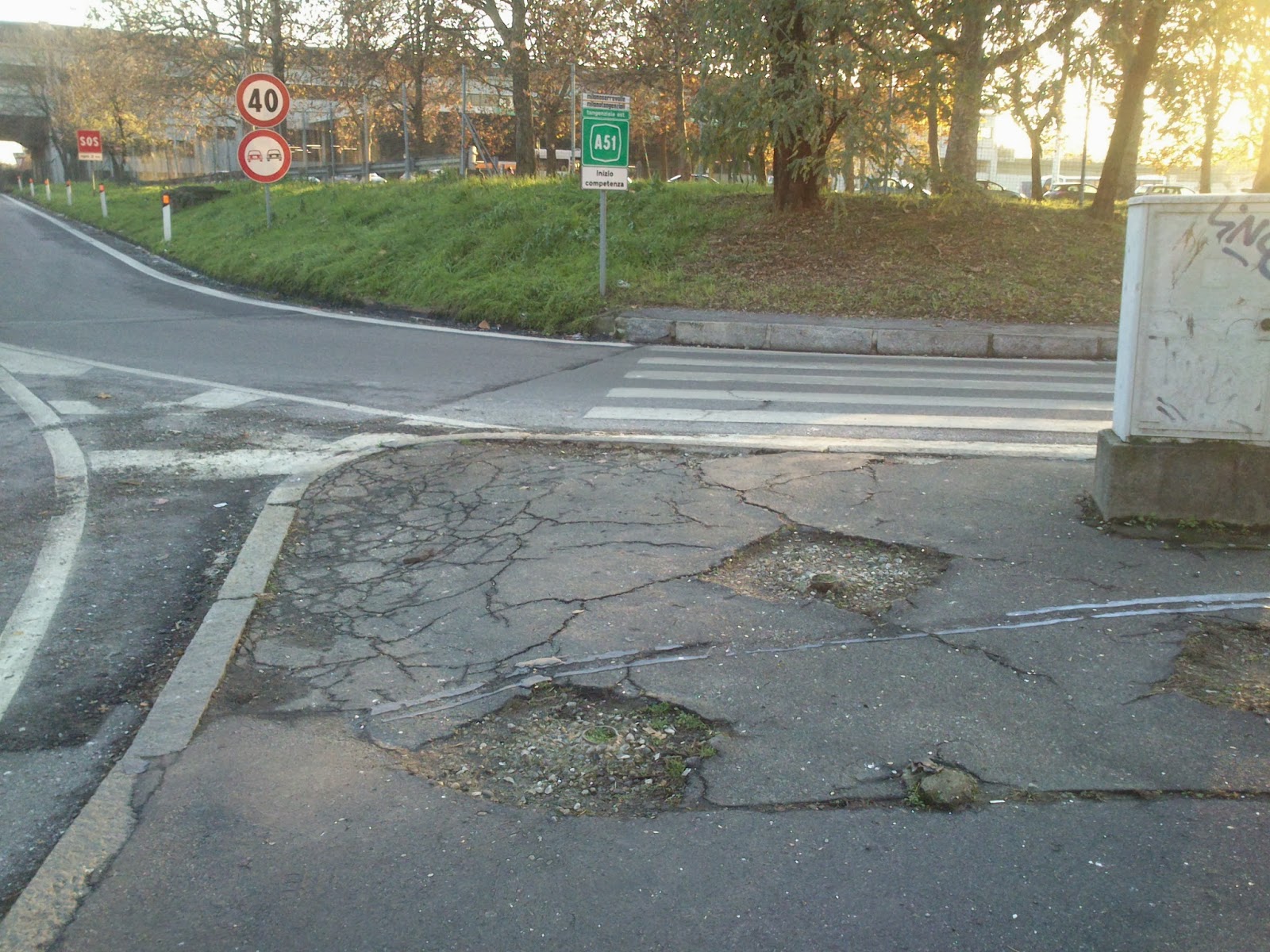 Spartitraffico di attraversamento (davanti alla stazione M2 di Cascina Gobba) completamente dissestato)