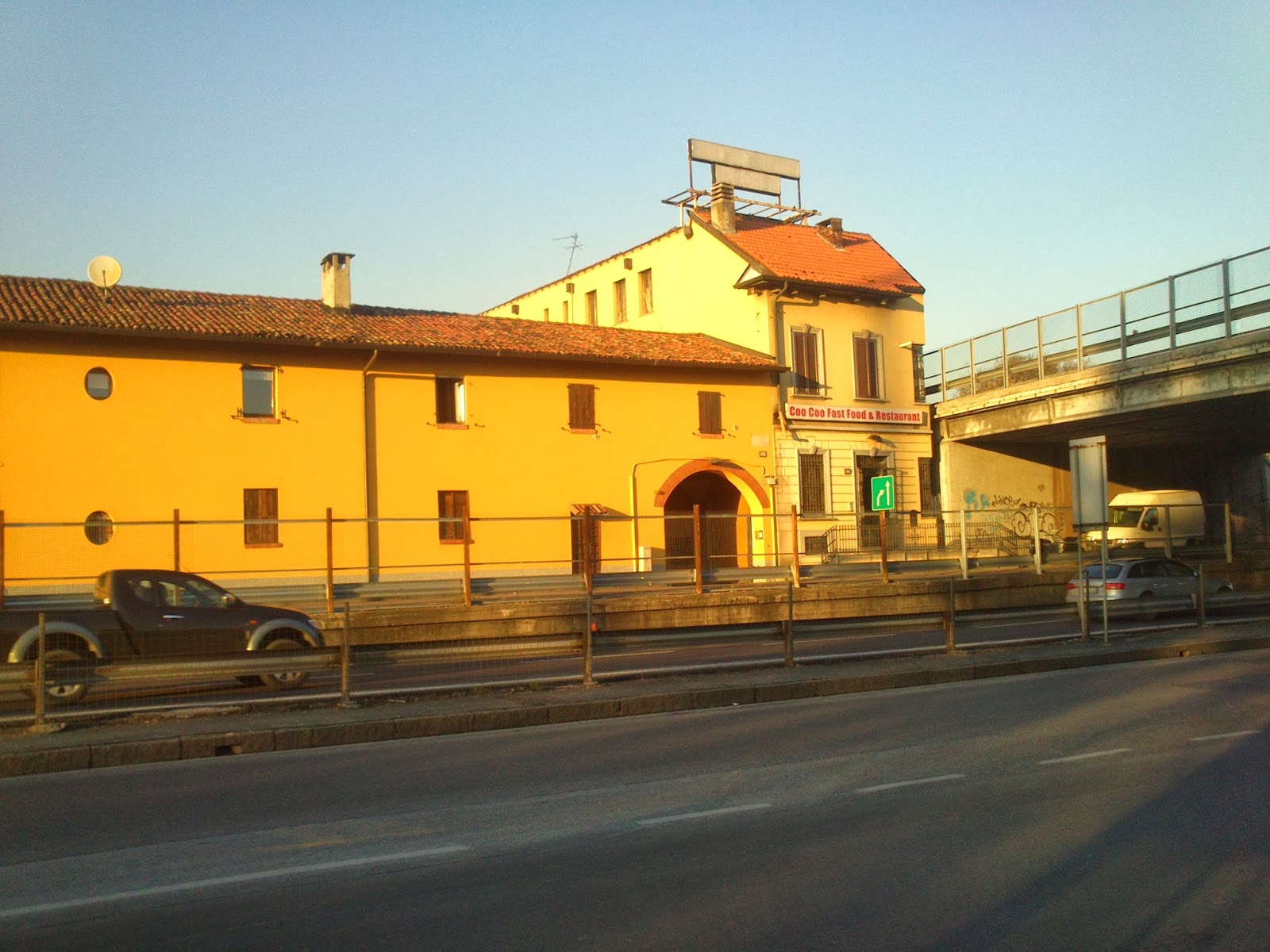 Vista dalla stazione di Cascina Gobba M2: tangenziale est e Milano 2. Una sola fila di piccole finestre dai vetri sporchi. Anche la stazione vorrebbe una “ritoccatina”.