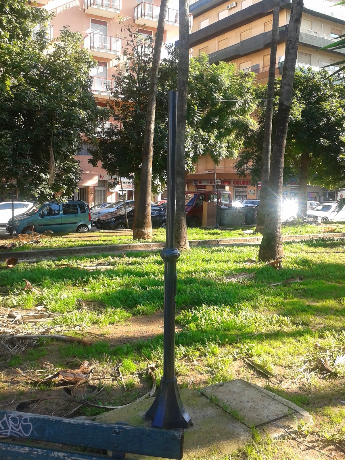 Di seguito una desolante carrellata di immagini, che raccontano come la piazza sia dimenticata da tempo. Aiuole mal curate o abbandonate, fontane diventate accumulo di acqua piovana e impianto di illuminazione inesistente. In particolare quando sono state scattate le foto (05/12/2013) l’impianto di illuminazione sembrava appena sostituito ma non ancora terminato, ma di operai e cantiere nemmeno l’ombra.
