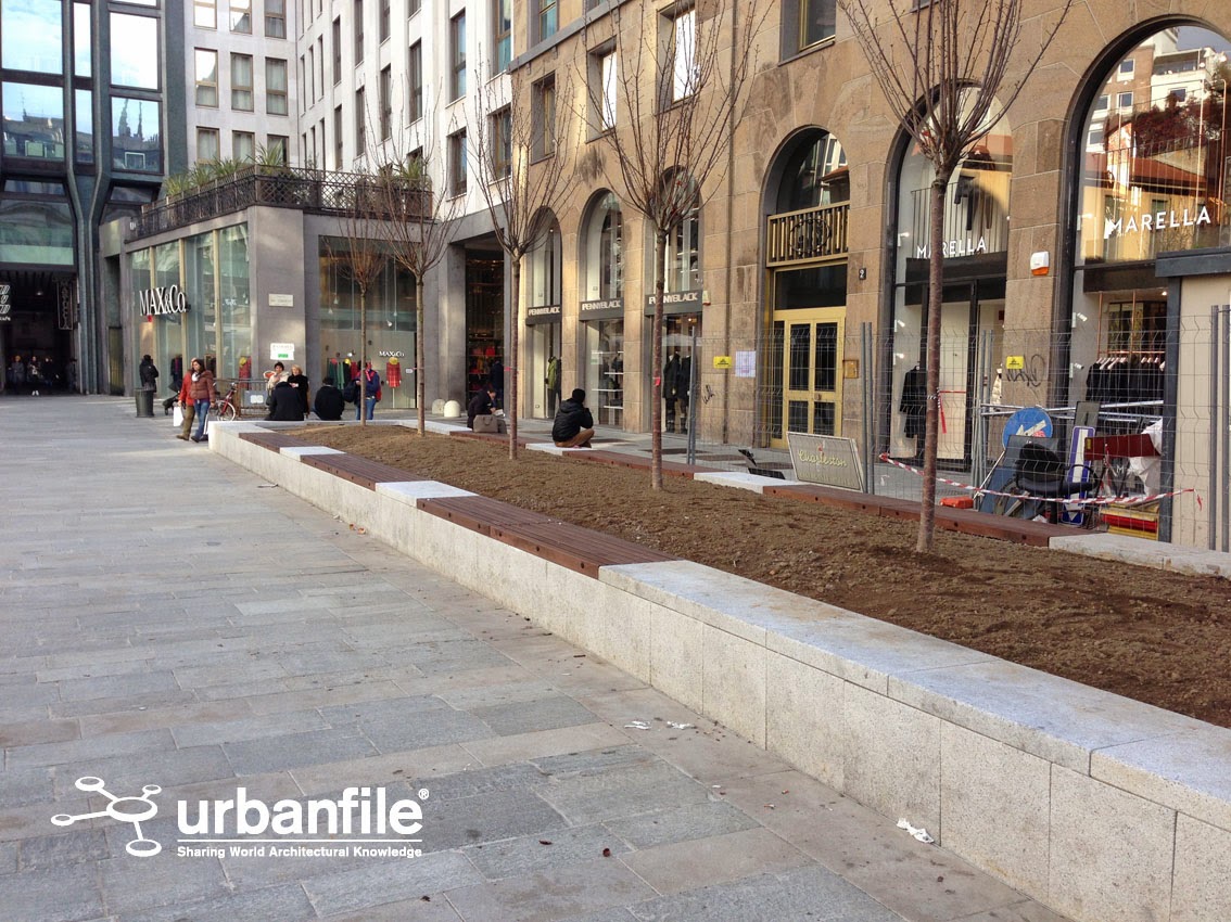 Ecco una serie di foto che mostrano lo stato dei lavori in Piazza San Babila. L’aiuola è stata completata. Pietra e seduta in legno per permettere alla gente di sedersi comodamente. Ancora da completare il tratto verso Via San Paolo.