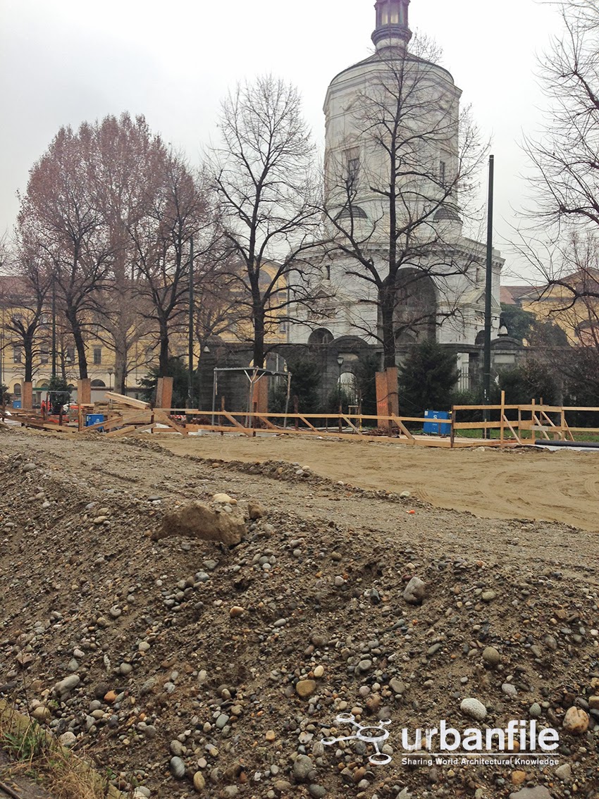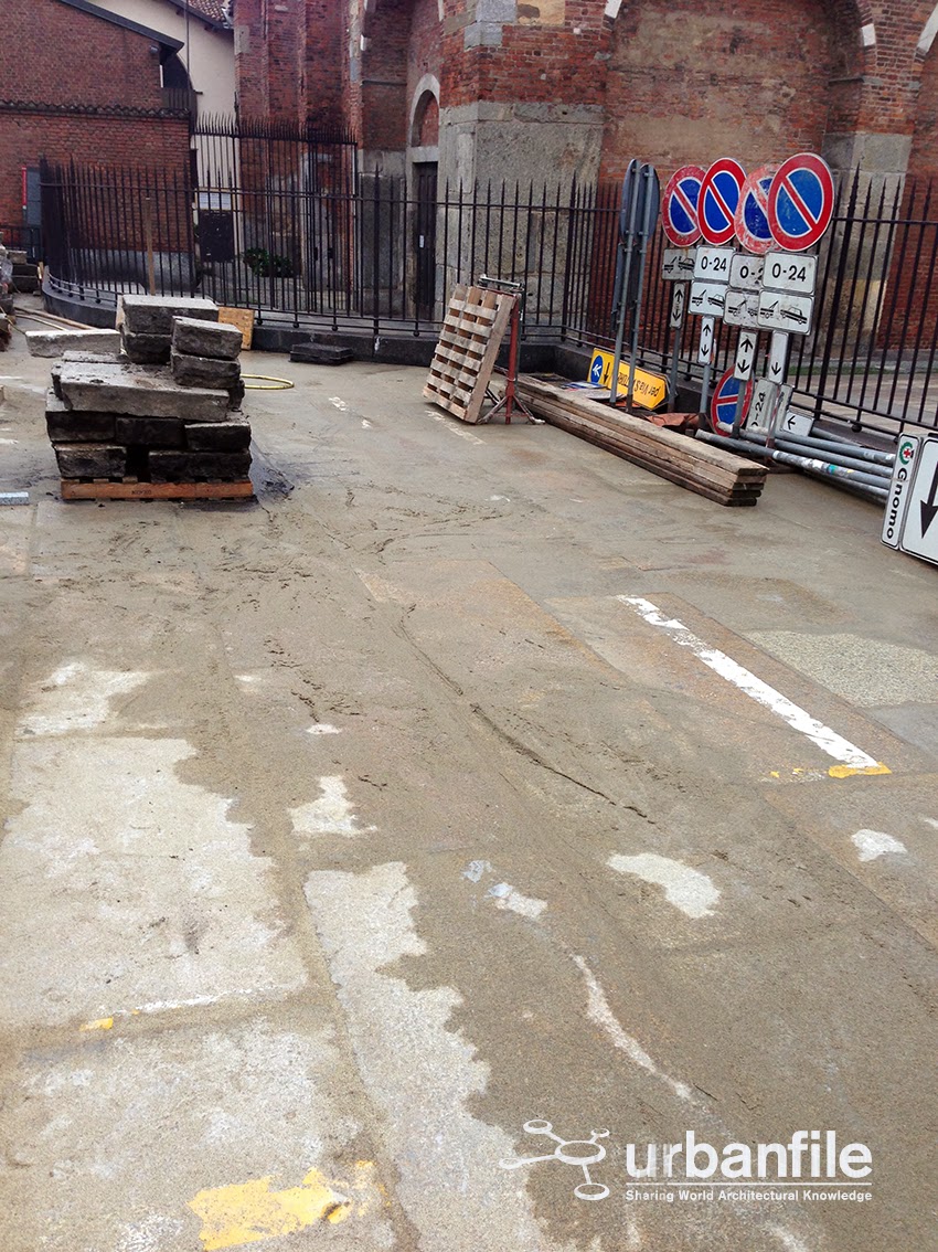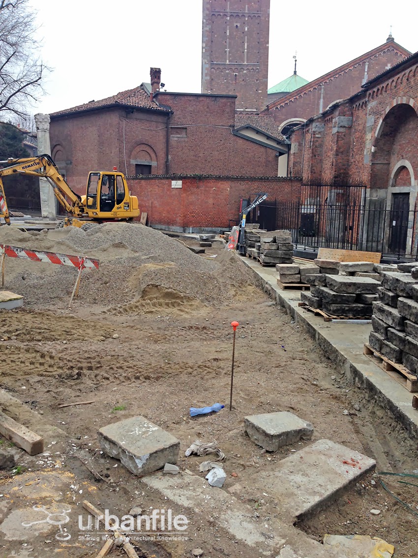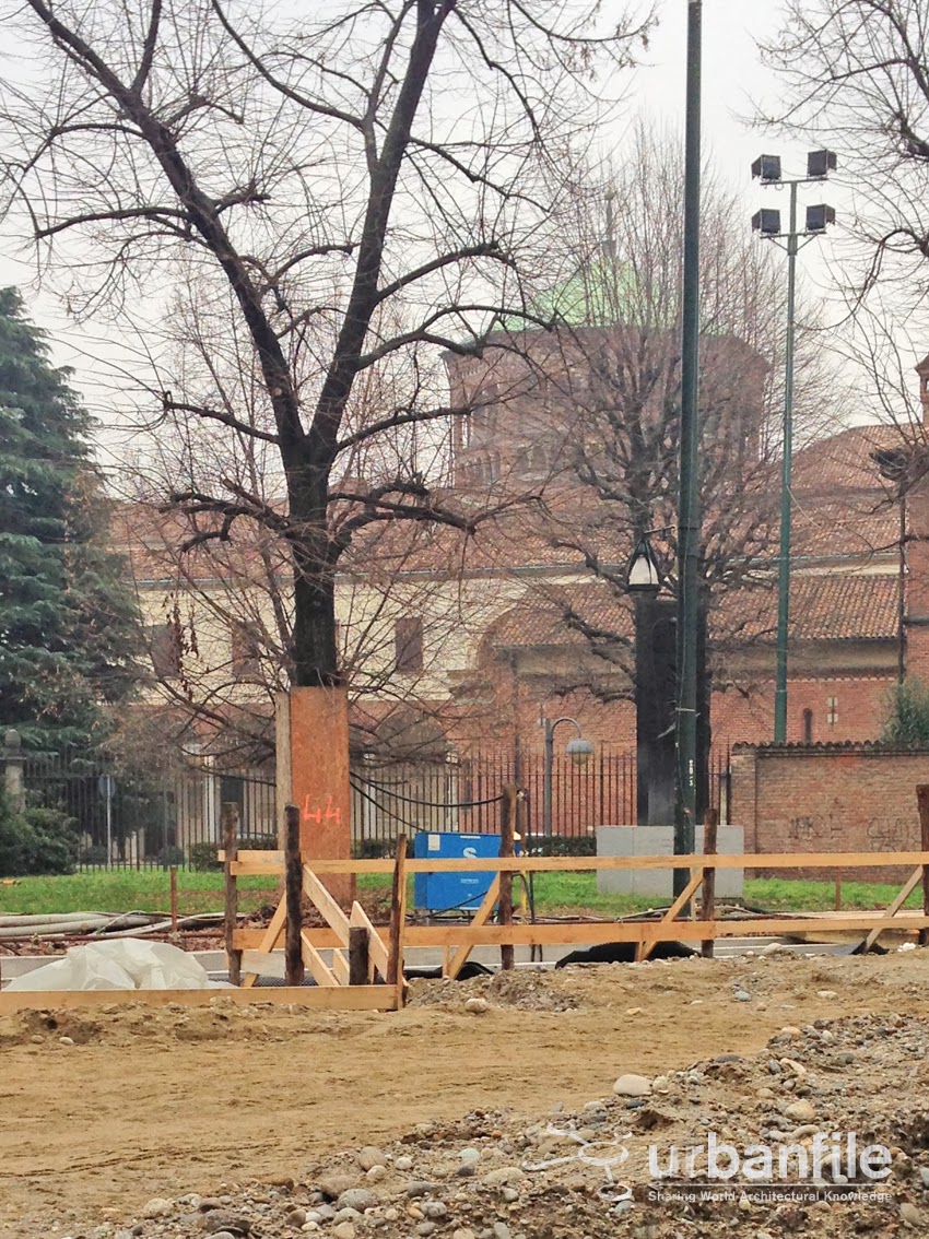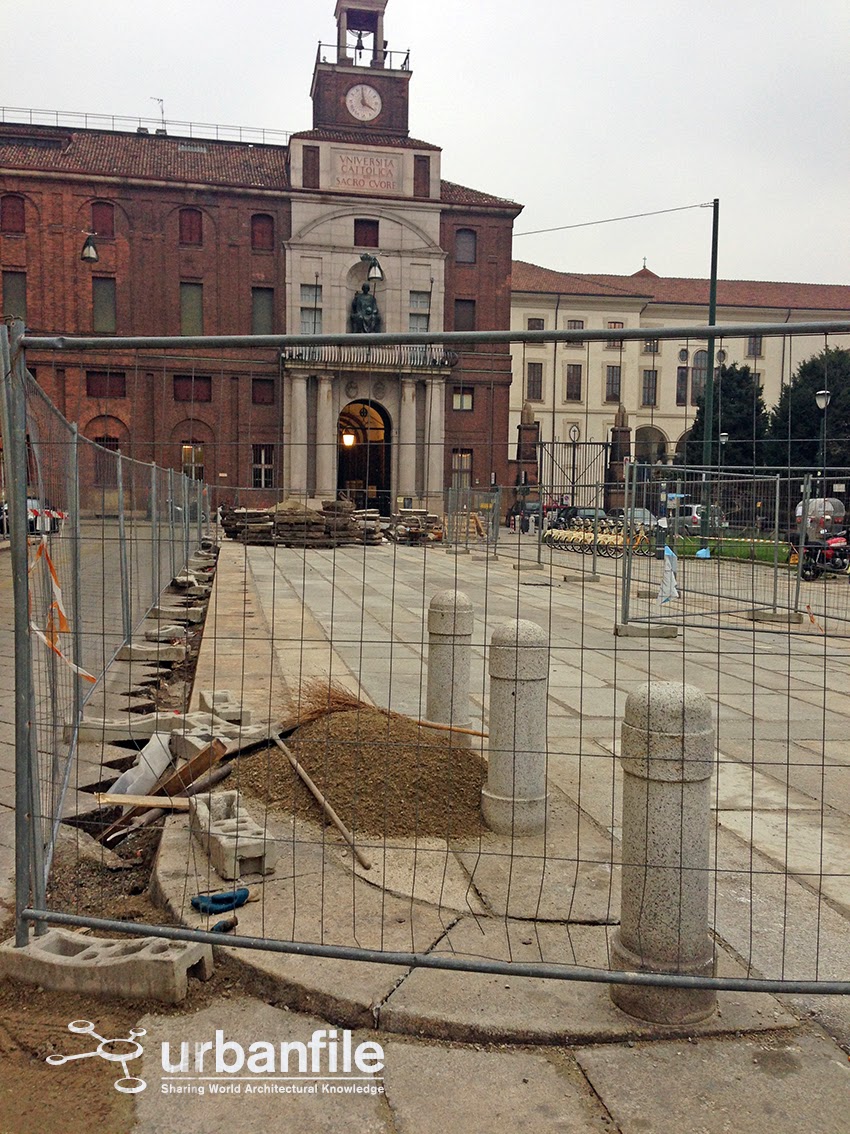 Partendo da Largo Gemelli, ho percorso tutto il cantiere che da anni sta attorno alla basilica. L’arredo urbano sta prendendo sempre più forma. Il parcheggio in un punto è ancora aperto, forse preferiscono concludere davanti a Sant’Ambrogio e davanti all’Università Cattolica, per non creare troppi disagi.