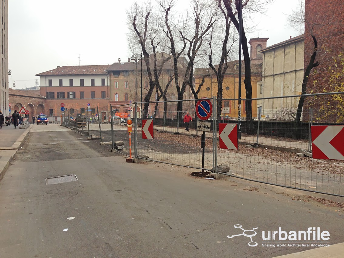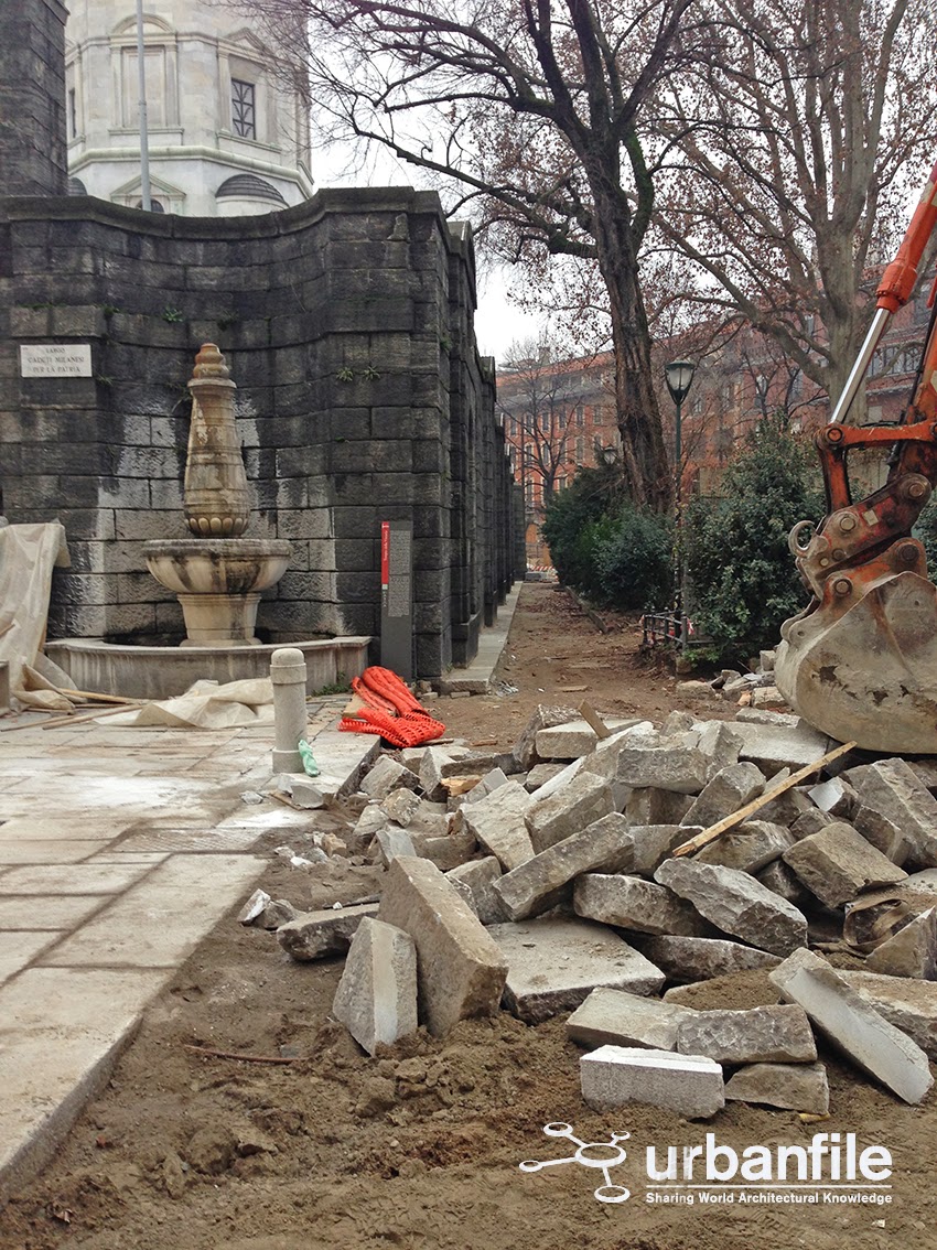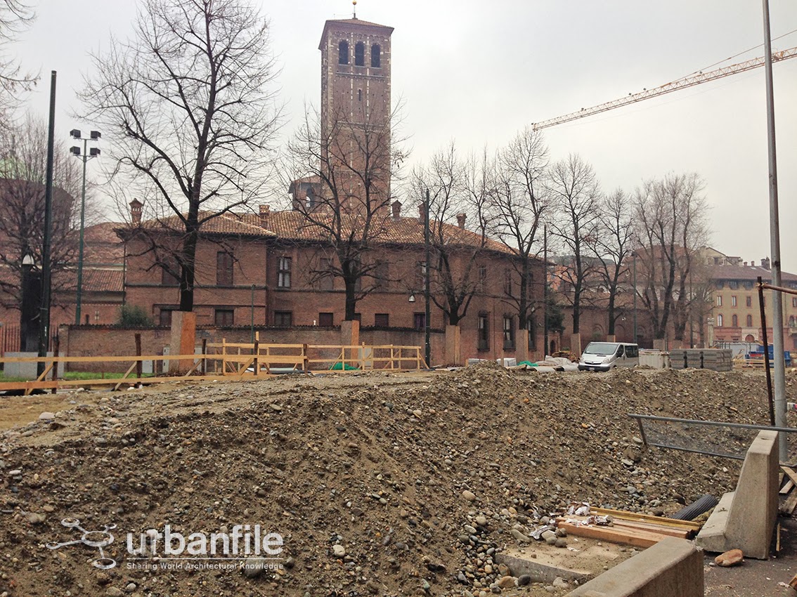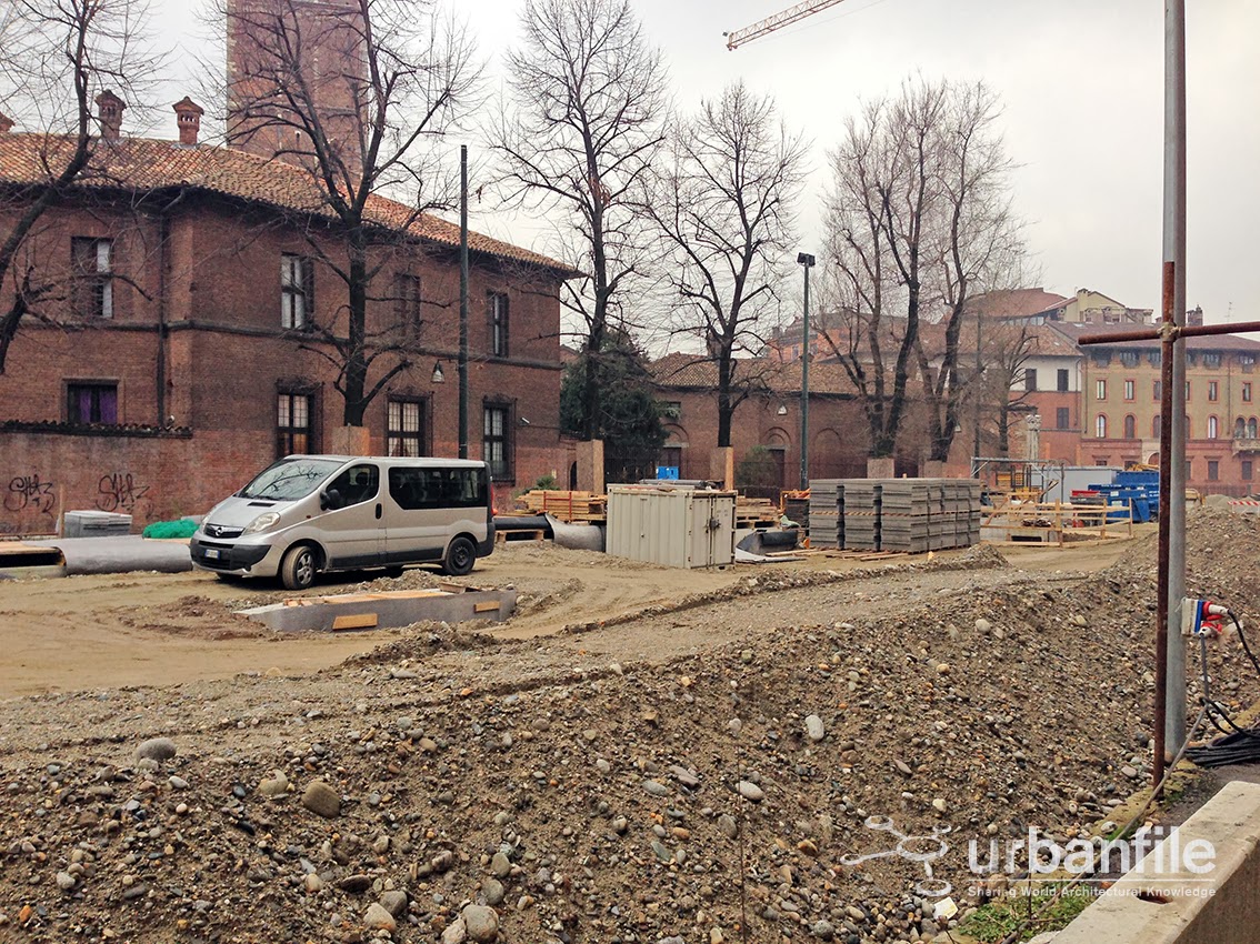 Partendo da Largo Gemelli, ho percorso tutto il cantiere che da anni sta attorno alla basilica. L’arredo urbano sta prendendo sempre più forma. Il parcheggio in un punto è ancora aperto, forse preferiscono concludere davanti a Sant’Ambrogio e davanti all’Università Cattolica, per non creare troppi disagi.