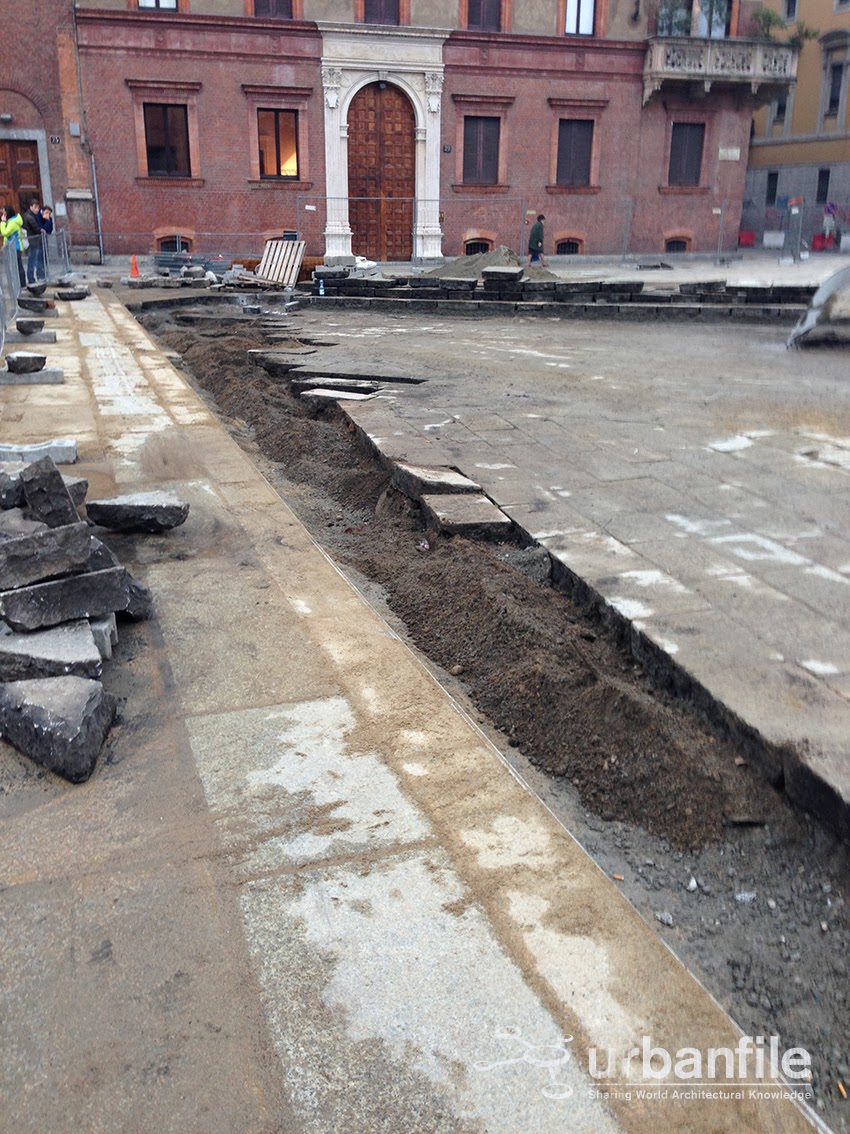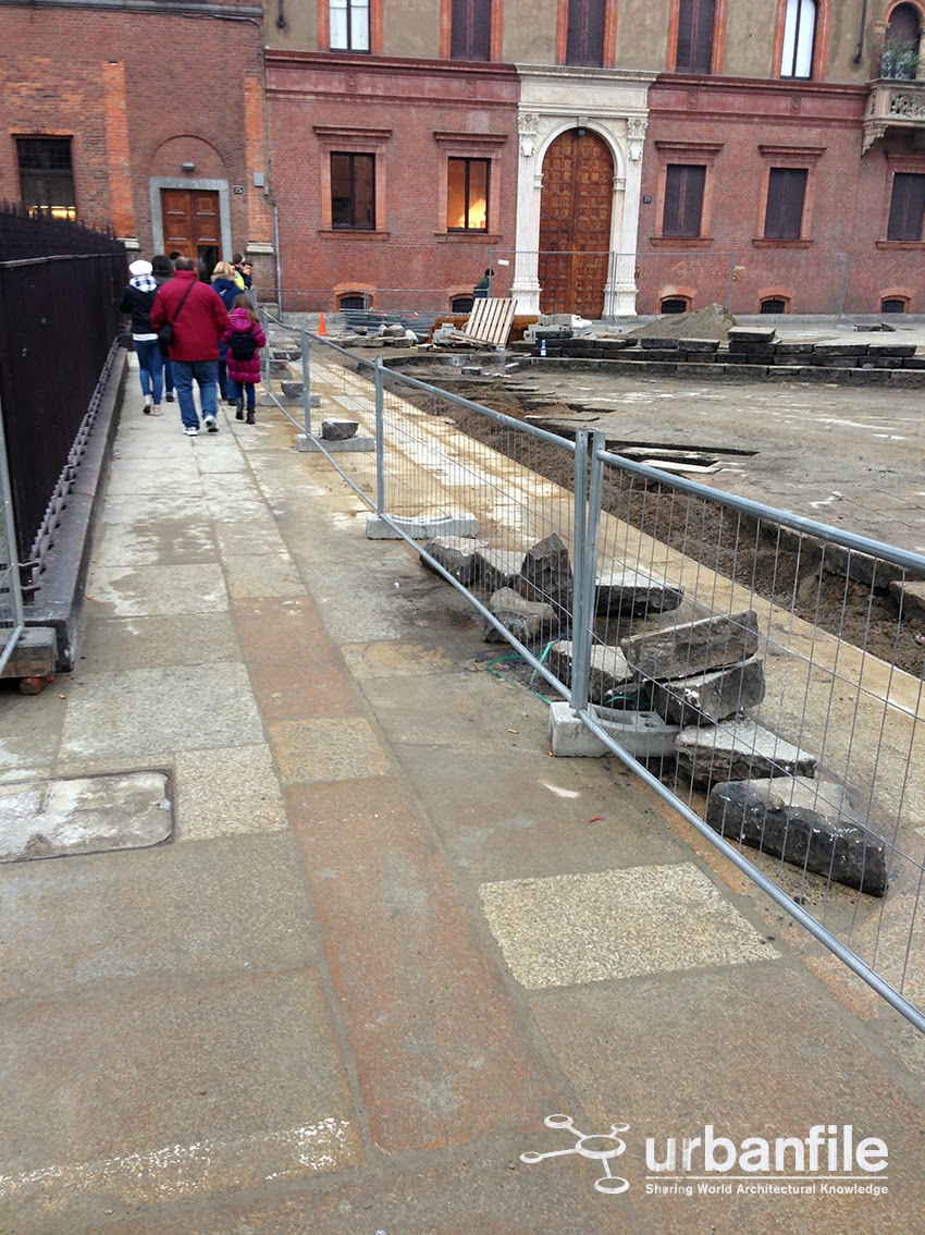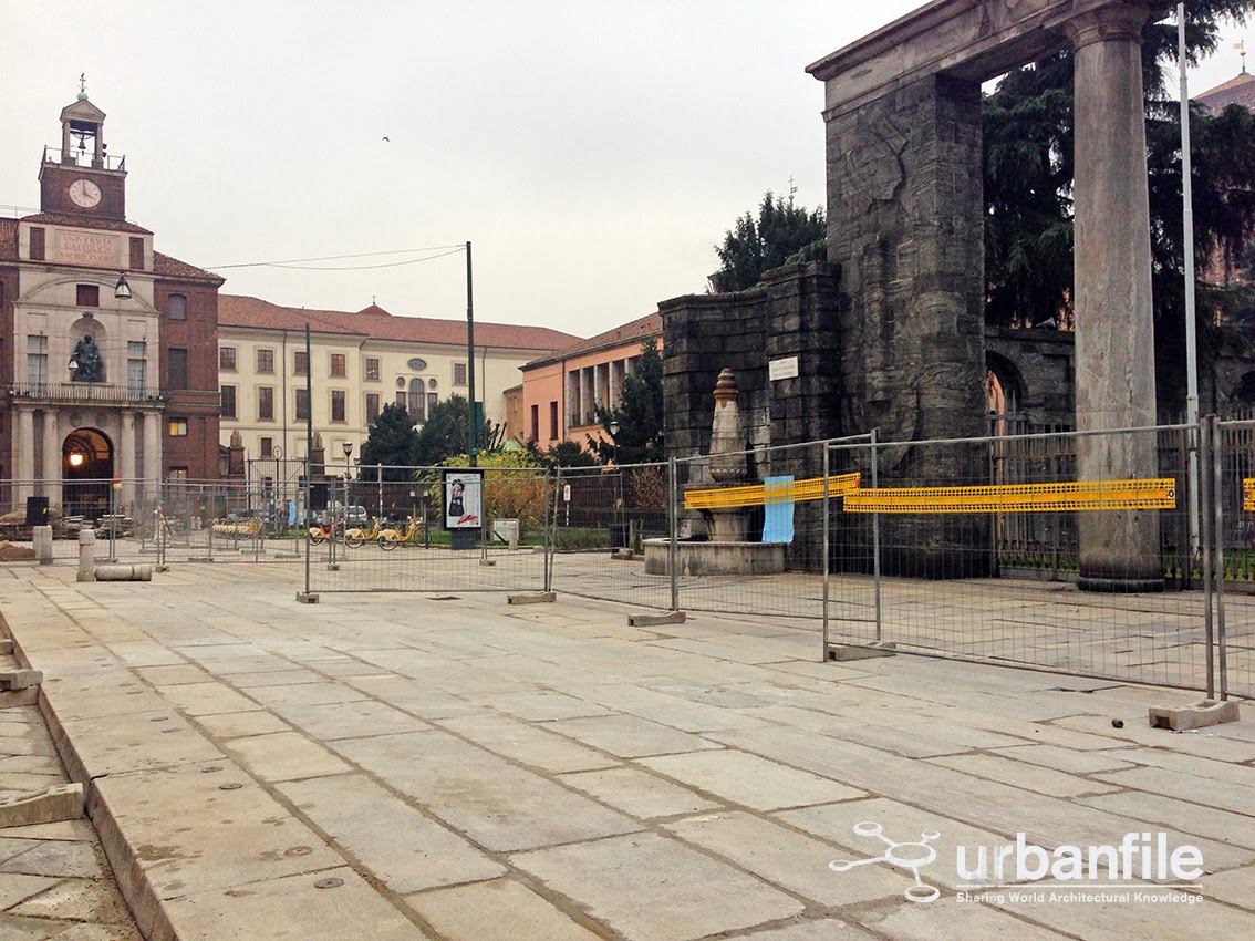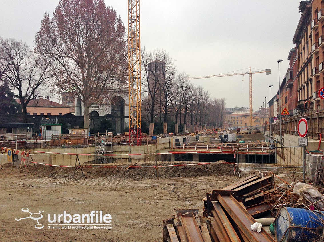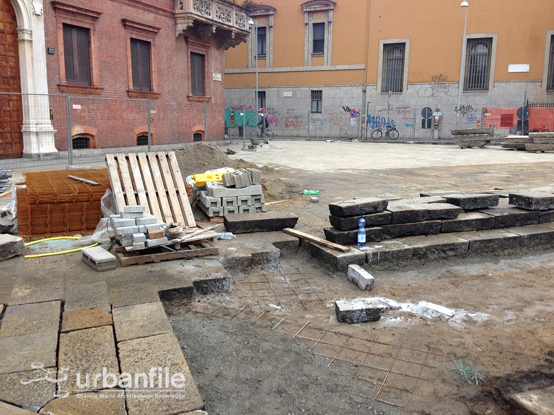 Partendo da Largo Gemelli, ho percorso tutto il cantiere che da anni sta attorno alla basilica. L’arredo urbano sta prendendo sempre più forma. Il parcheggio in un punto è ancora aperto, forse preferiscono concludere davanti a Sant’Ambrogio e davanti all’Università Cattolica, per non creare troppi disagi.