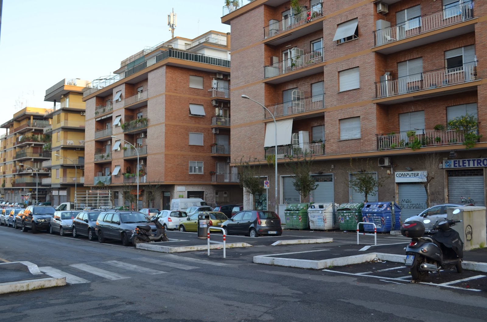 Ritorniamo oggi sul parcheggio di via dei Crispolti, nel quartiere di Casal Bruciato: più di un anno fa avevo espresso dei dubbi sul progetto di sistemazione superficiale e sul materiale usato per arredare la via.