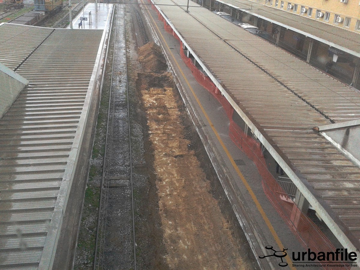 In tutto ciò nei binari di servizio laterali sono da giorni parcheggiate elettromotrici e vagoni cariche di strumenti e materiale ferroviario, sicuramente utili al binario provvisorio nel tratto di piazzale Francia.
