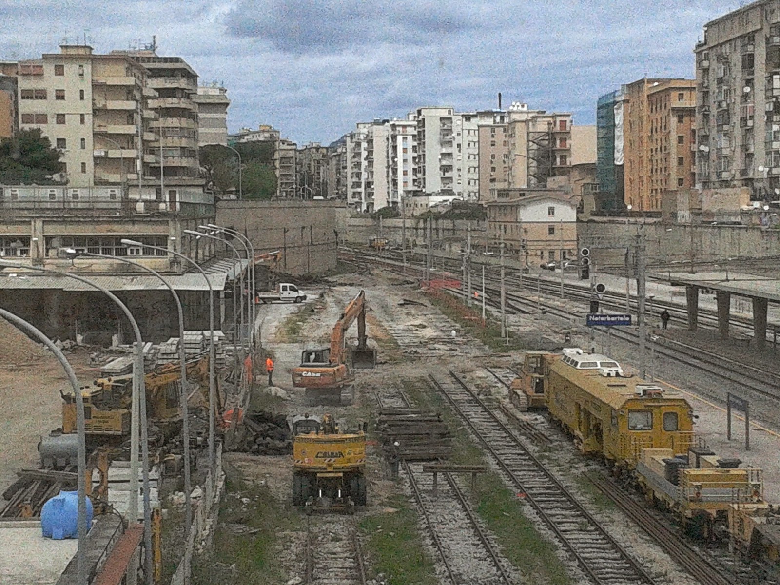 Qui si procede con lavori di rifacimento marciapiedi sul ponte Notarbartolo, allestimento cantiere nella piazza antistante futura sede del capolinea tranviario e allestimento cantiere per lo scavo della galleria del passant ferroviario Notarbartolo-Francia.