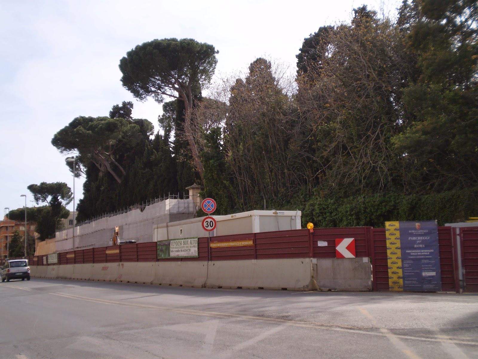 Si può notare dalle foto come, in contemporanea con i lavori di scavo, si stiano rimettendo a nuovo i muraglioni di contenimento del giardino di Villa Massimo, ridotti, fino a poco tempo fa, in condizioni davvero precarie.