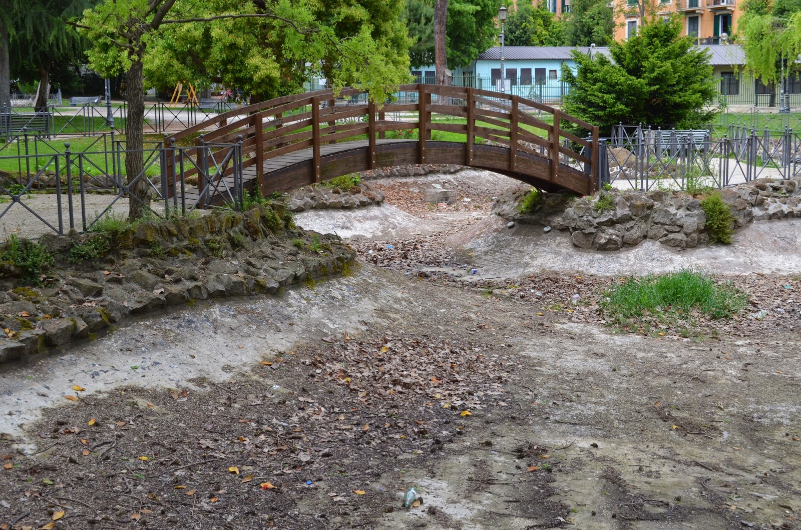Purtroppo queste sono le condizioni in cui versa questo bellissimo parco romano, famoso per il ponte di legno che oltrepassa il piccolo lago.