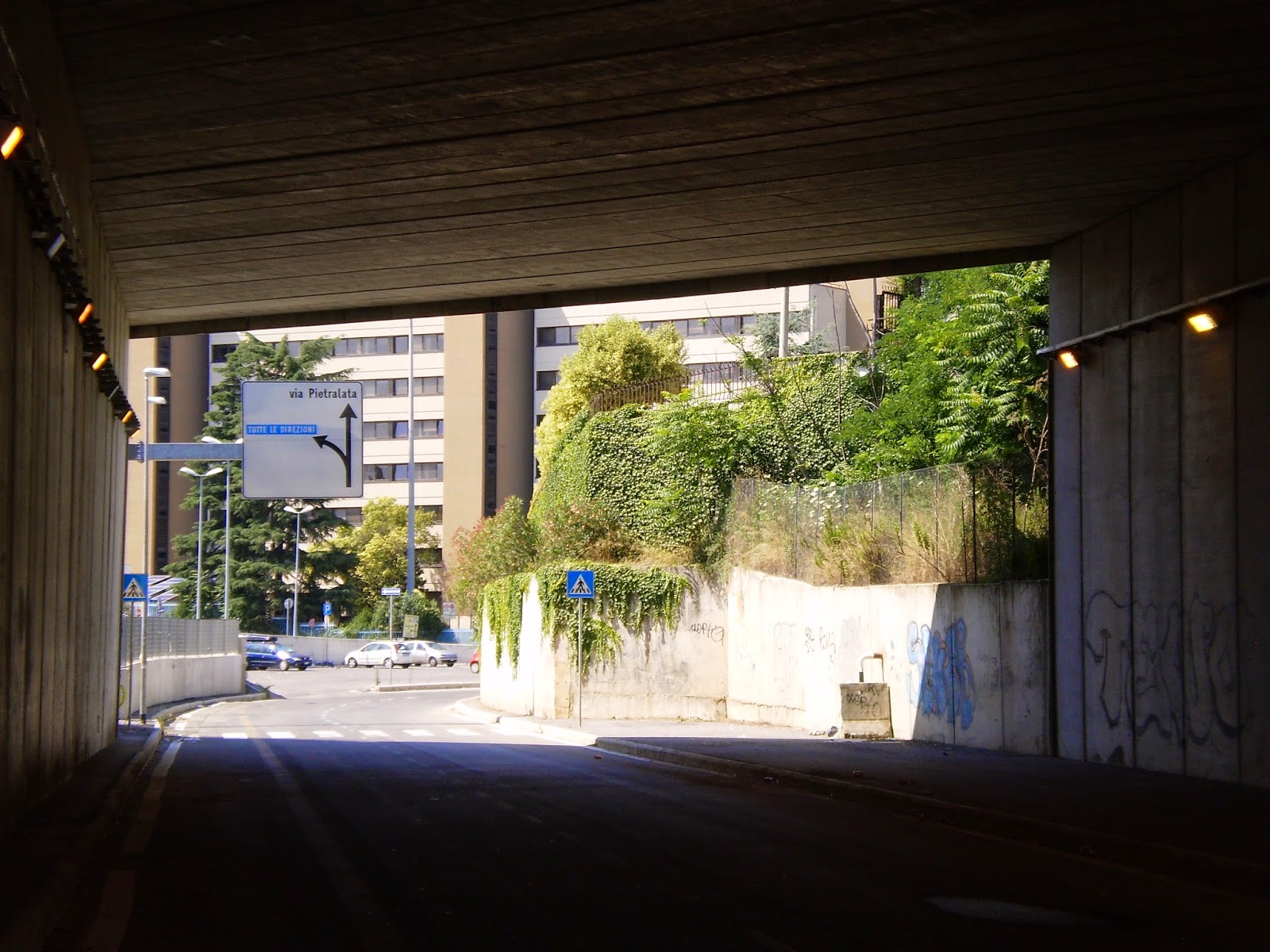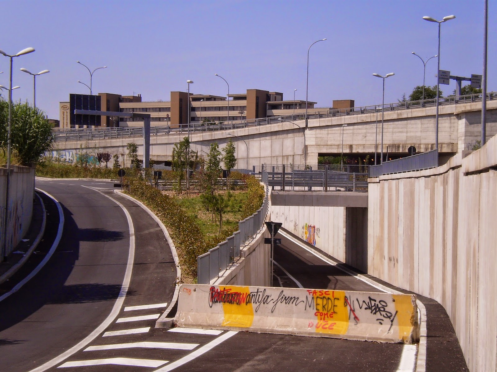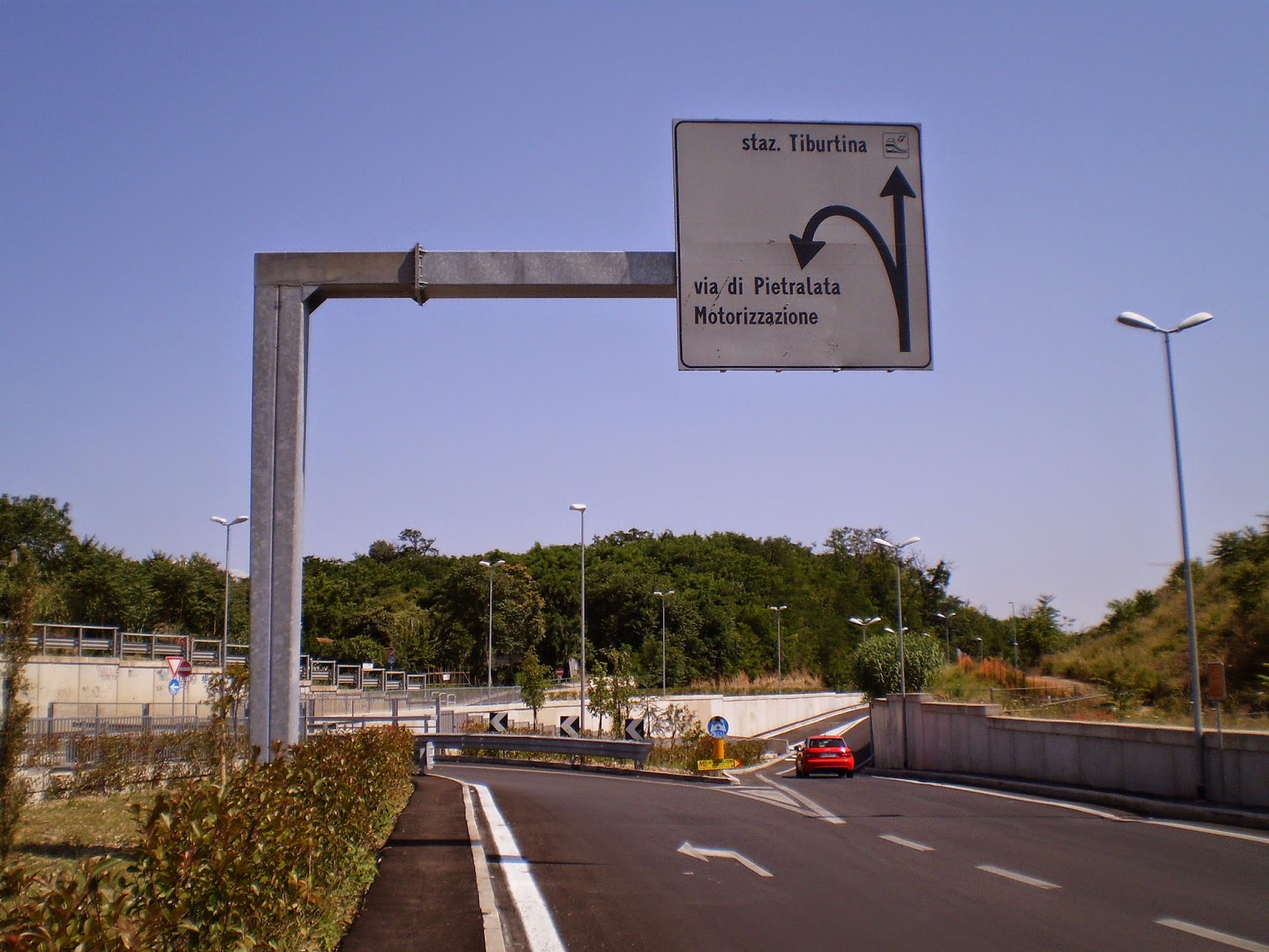 Dall’altro lato invece, verso via di Pietralata, la strada diventa un budello a doppio senso. Sarebbe paradossale l’aver concepito uno svincolo così imponente senza aver predisposto anche un allargamento di questa strada, pericolosa sia per le auto sia per i pedoni, data la strettezza indecente del marciapiede.