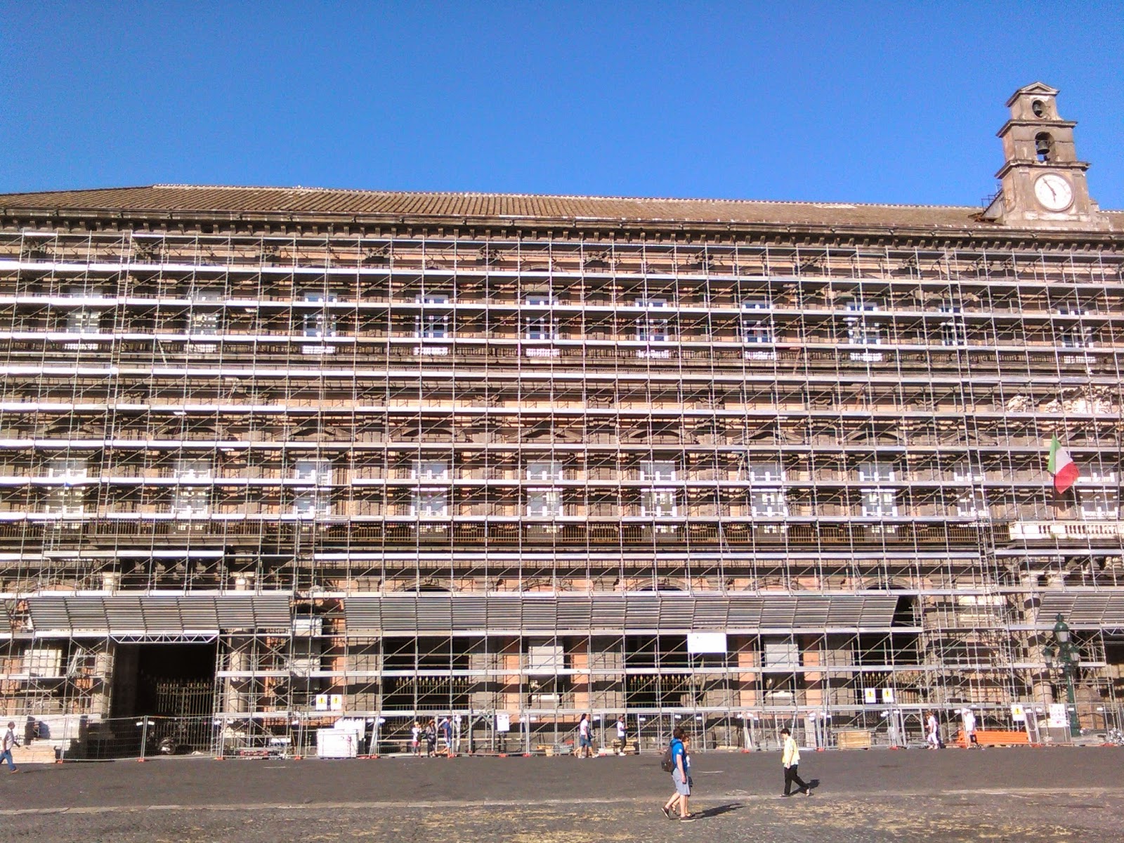 ponteggio in allestimento sulla facciata principale della Reggia di Caserta |