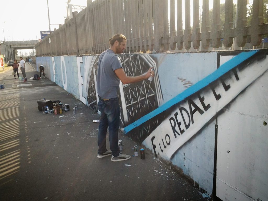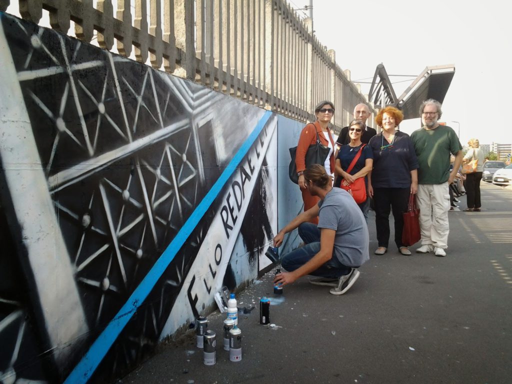 Il consiglio di Zona 4 ha voluto riunire giovani poeti, streetartist milanesi e studenti dell’Accademia di Brera per riqualificare uno slargo anonimo e trascurato che si vorrà poi intitolare alla fabbrica che non c’è più.