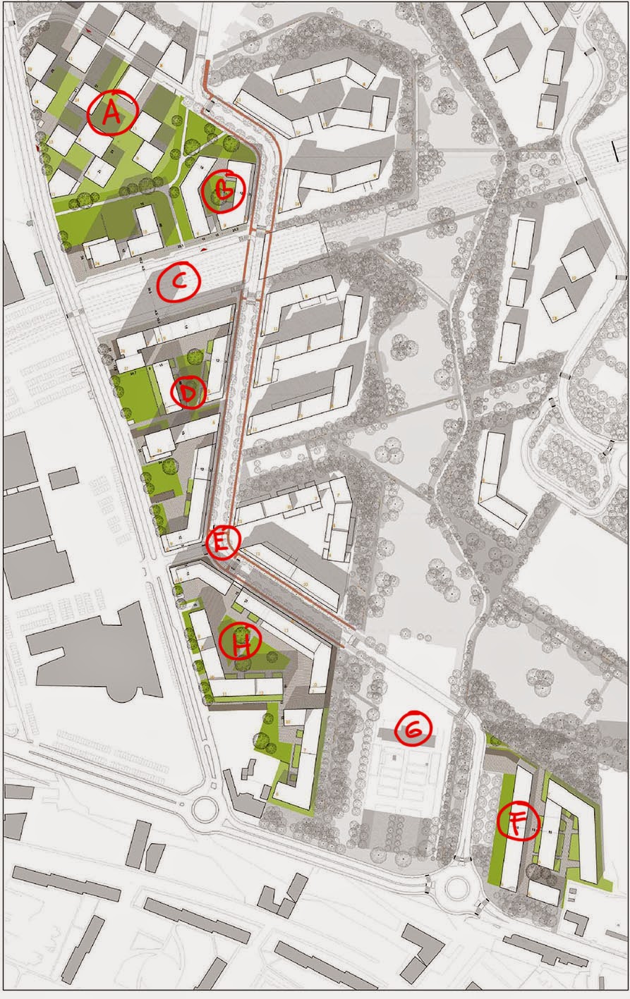 Per ora sono state costruite le torri A, stanno già costruendo anche il lotto B, D e F. La scascina che da il nome alla zona G, è in fase di restauro. Mentre hanno già realizzato buona parte del prcorso stradale che zigzaggando attraversa il quartiere E. Si nota anche il grande boulevard centrale C, allestito come una passeggiata che condurrà al nuovo parco che sarà creato tra le residenze e il cimitero Maggiore. I tralicci dell’eletricità presto saranno rimossi, visto che i cavi elettrici sono già stati eliminati.
