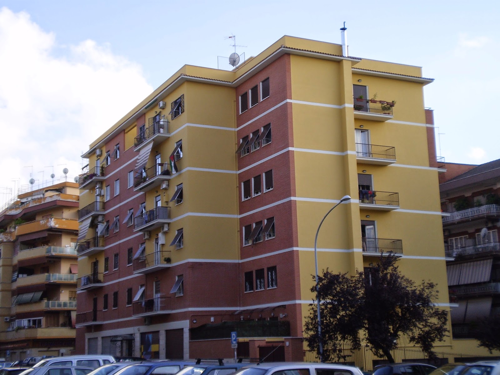 La prima immagine si riferisce all’edificio situato all’incrocia tra viale Delle Gardenie e via dei Lauri, dove si è ristrutturato l’intero palazzo cambiandone i connotati fisici; da un grigio residuato post bellico e un palazzo con una sua decenza e un minimo di stile.
