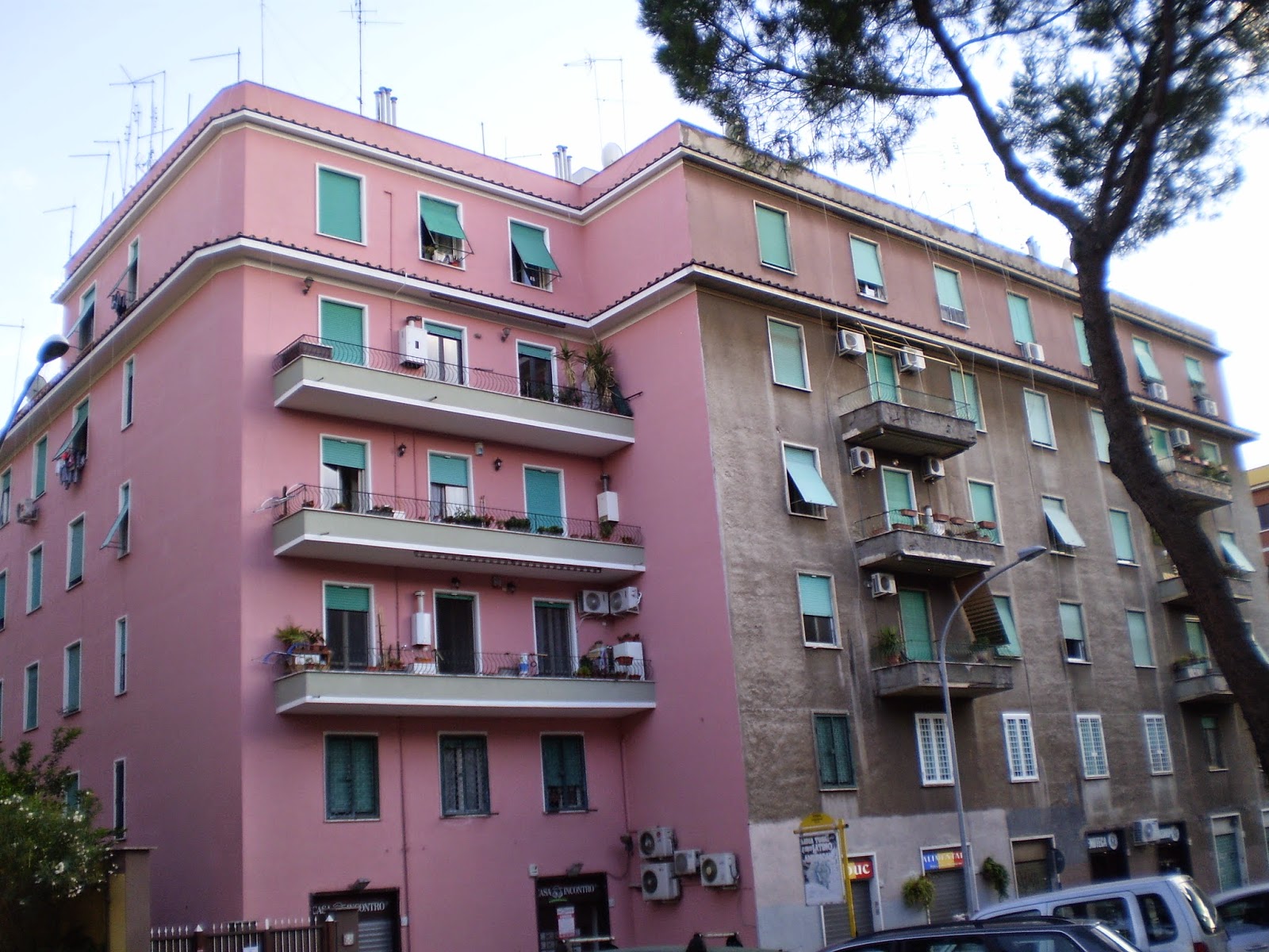 Proprio lì accanto, sempre su viale delle Gardenie, un altro enorme complesso a cui, però, non è toccata la stessa fortuna. La ristrutturazione ha riguardato solo un’ala dello stabile e i colori usati sono decisamente “forti”, con delle tonalità che starebbero bene, forse, ad Eurodisney. Lo stacco tra il rosa nuovo di pacca e il grigio vecchio di 50 anni non fa che acuire il senso di incompletezza e fastidio per questo intervento, in cui si sconta anche la pecca di aver mantenuto sul terrazzo una selva disordinata di fili e antenne.