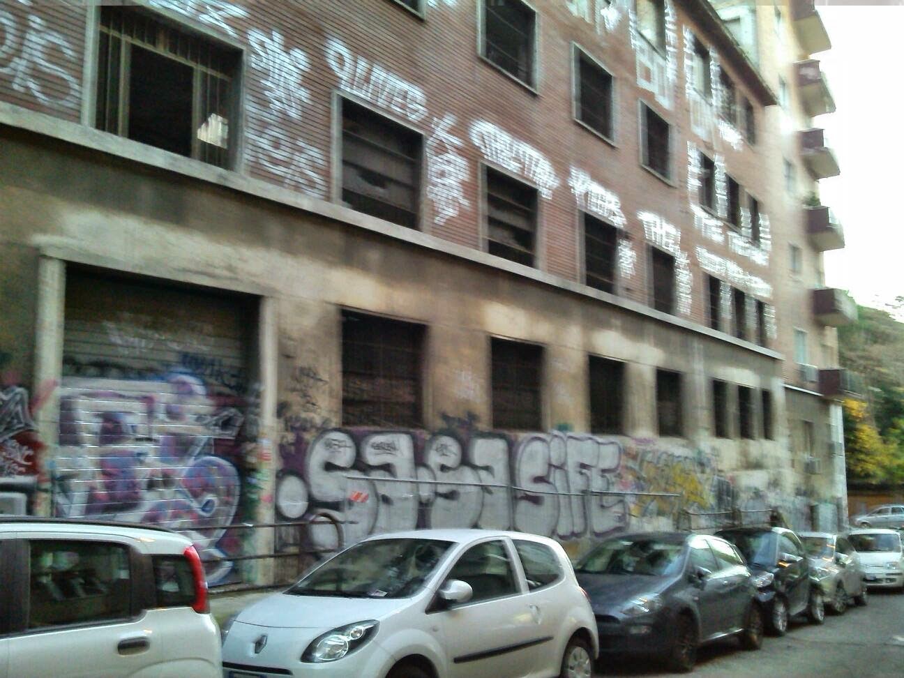 Fino a poco tempo fa si presentava impacchettato dalle impalcature per dei lavori, bloccati poi per delle irregolarità, e, durante il fermo del cantiere, i vandali di cui questa città abbonda hanno pensato bene di ridurre lo stabile, così come anche tutta la via, ad un immenso scarabocchio.