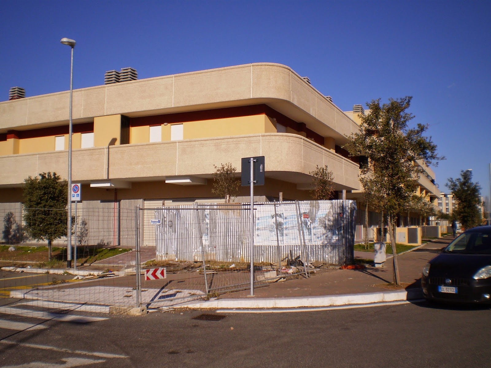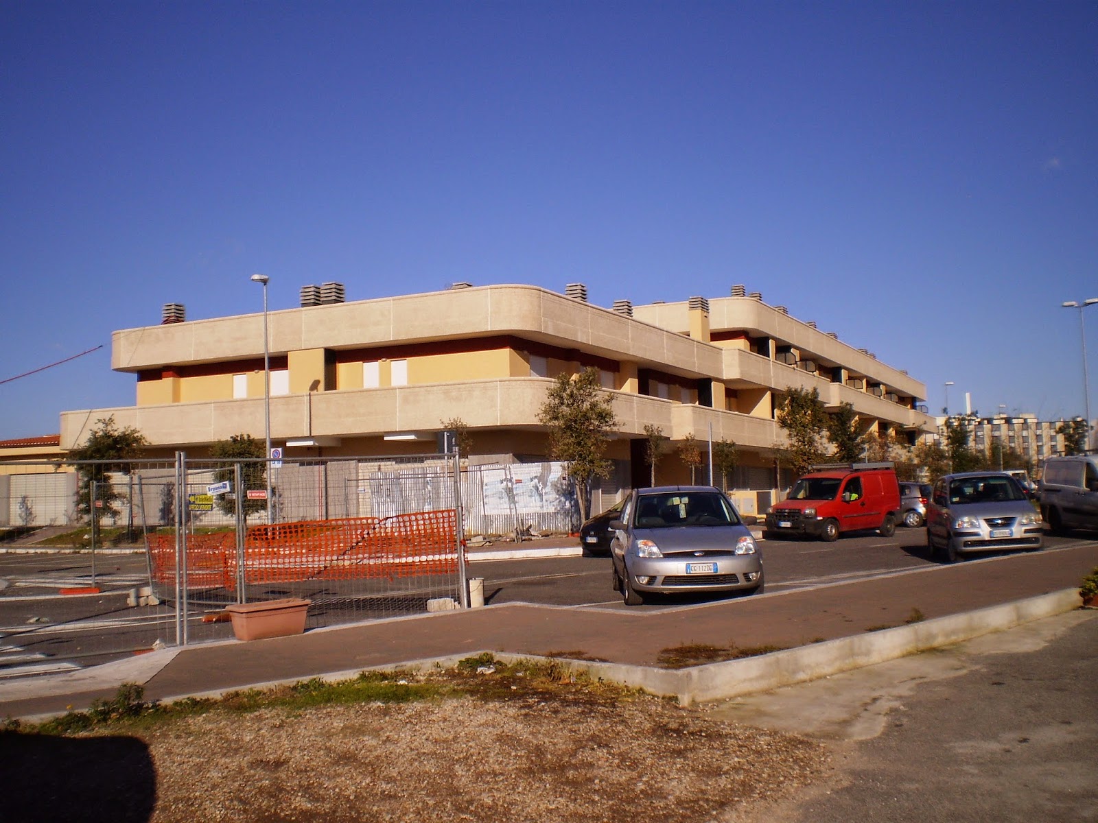 Accanto al cantiere, è sorta, purtroppo, anche questa terribile struttura, una palazzina con funzioni residenziali e commerciali che presenta le solite pesanti forme  e che non si adatta nemmeno alle palazzine circostanti, presentandosi troppo bassa e tozza. Un’altra delle tante, tantissime, occasioni mancate per presentare qualcosa di decente nel contesto delle periferie romane.