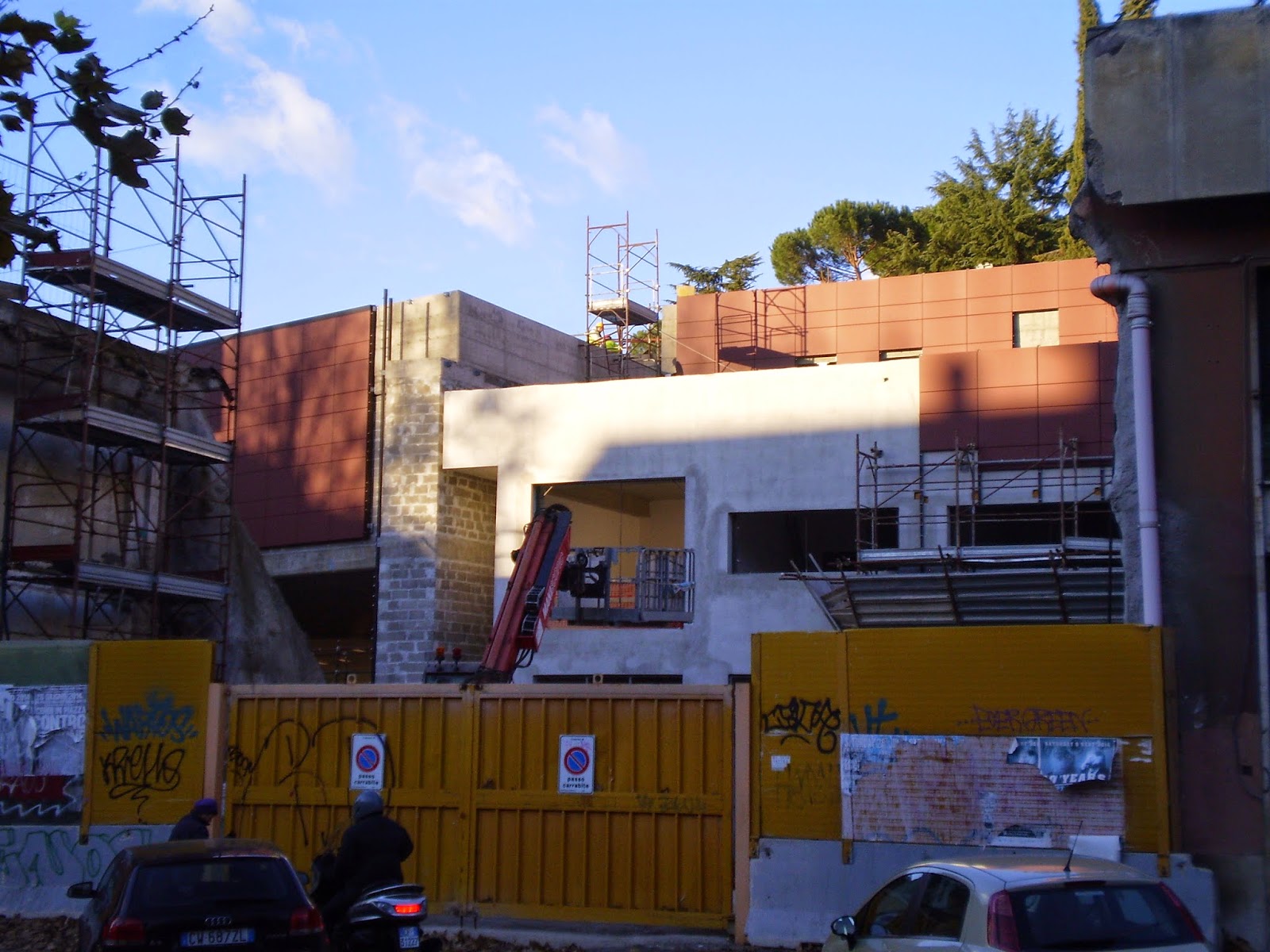 il progetto è buono ma non capisco la ragione di fare un rivestimento in pannellini metallici prefabbricati color pseudo-rame invece di usare un più solidi e duraturo rivestimento in pietra (che sarebbe costato anche meno).