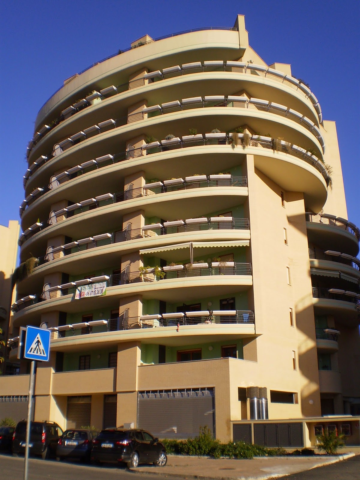 A differenza delle strutture presenti in via Bacchelli, questi palazzi risultano minimamente più dinamici, presentando delle forme più dolci e smussate.