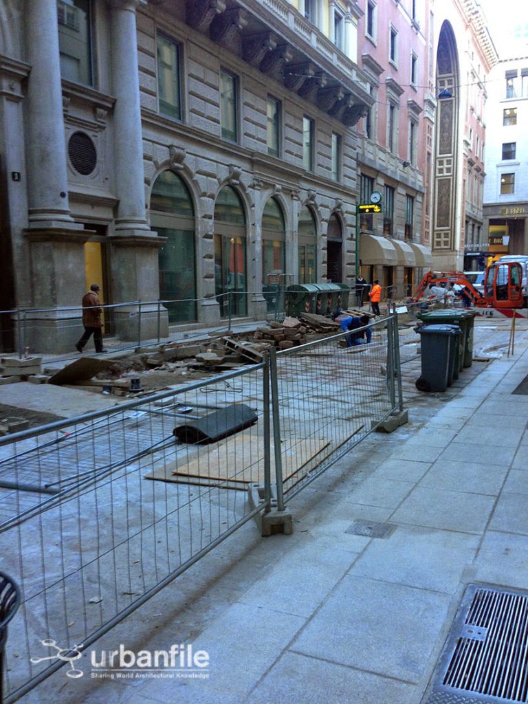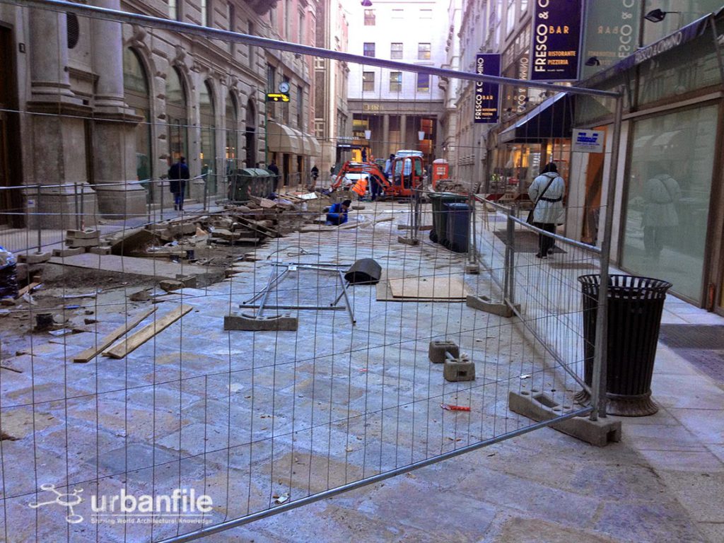 Proseguono i lavori nel quadrilatero di vie nei pressi della Galleria (tra via San Raffaele, Via Foscolo e via Santa Redegonda), con pavimentazione nuova in pietra. A quanto pare il Comune ha pensato bene di riutilizzare i vecchi masselli del pavé abbinandoli a nuove pietre in beola più chiare che disegneranno i “marciapiedi” ai bordi delle vie. Bellissimo intervento e tanto necessario per il centro della città, ma perché non è stato pensata la stessa cosa anche per i marciapiedi di piazza del Duomo? Infatti il lato occidentale (lato Carminati-McDonald’s) e lungo l’arcivescovado i marciapiedi sono ancora in catrame. Perché non sono stati contemplati degli interventi di abbellimento in pietra anche per questi lati della piazza?