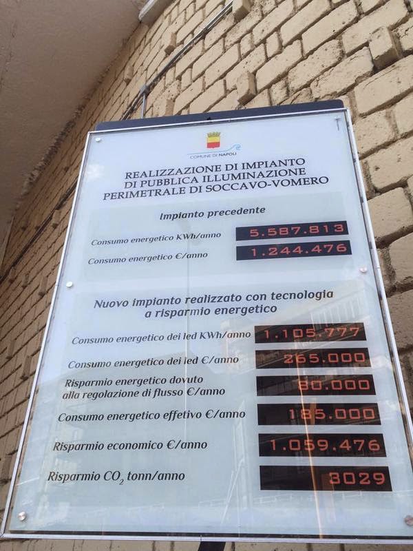 Insomma il LED conviene. Come annuncia il vice-sindaco in un’intervista, il comune punta sull’adeguamento di tutti gli impianti cittadini a risparmio energetico e lo fa cominciando dalla perimetrale Soccavo/Vomero.
