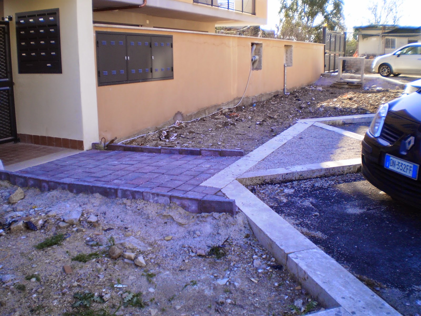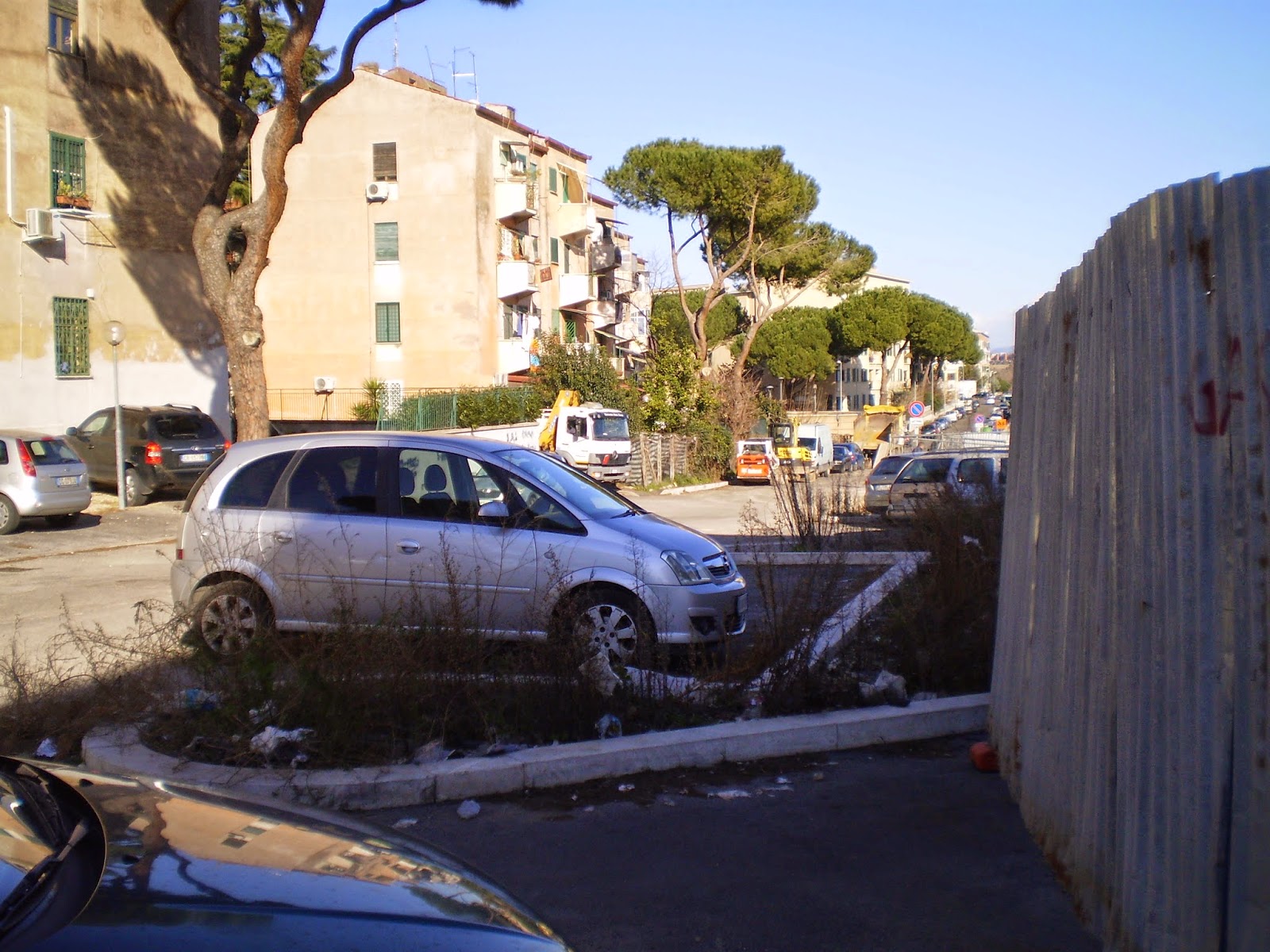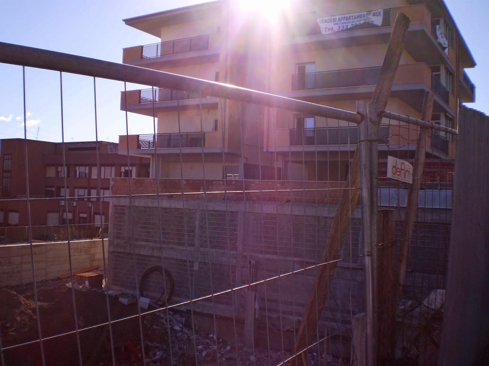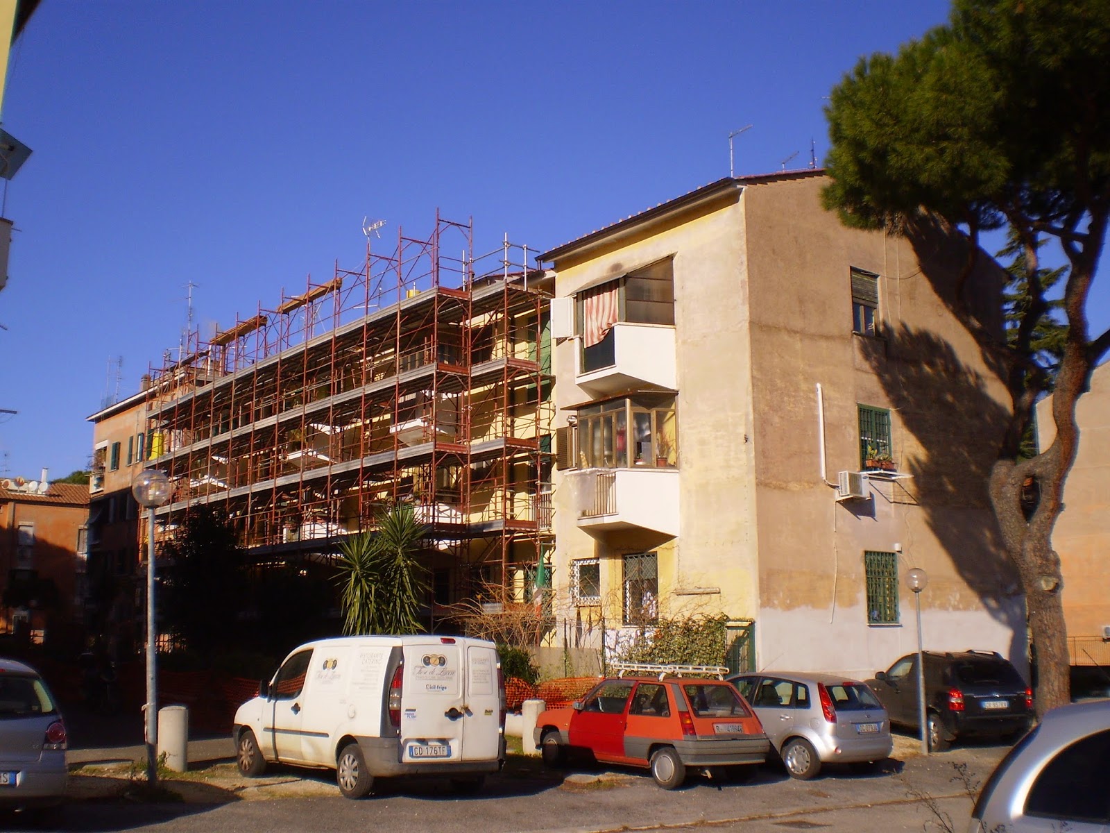 Si possono notare anche le impalcature che avvolgono uno dei palazzi prospicienti, mentre la ristrutturazione di un altro manufatto è da poco terminata.