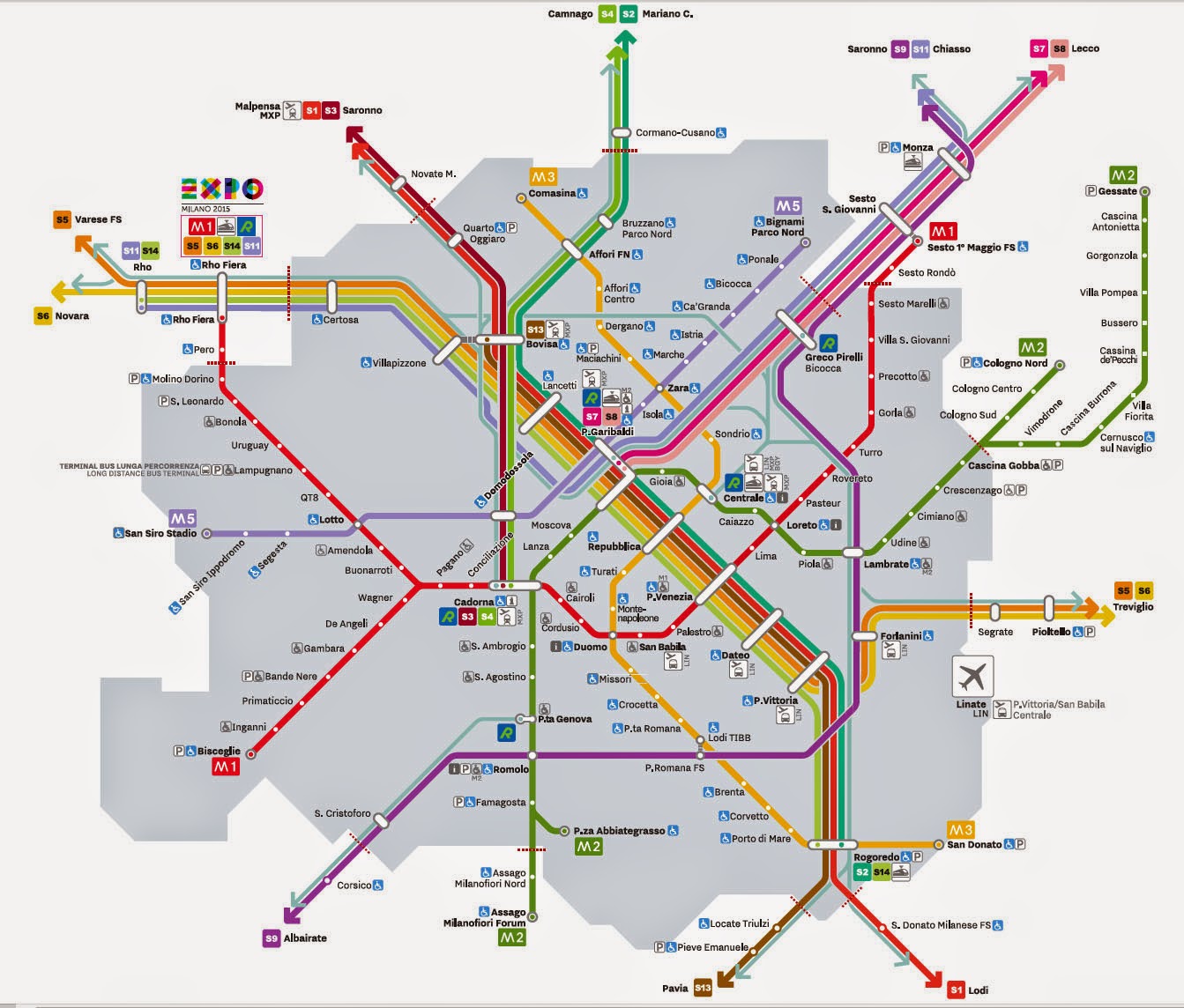 Sul ito dell’Expo è scaricabile una bella e completa mappa dei trasporti urbani milanesi su rotaia (metropolitane e treni)