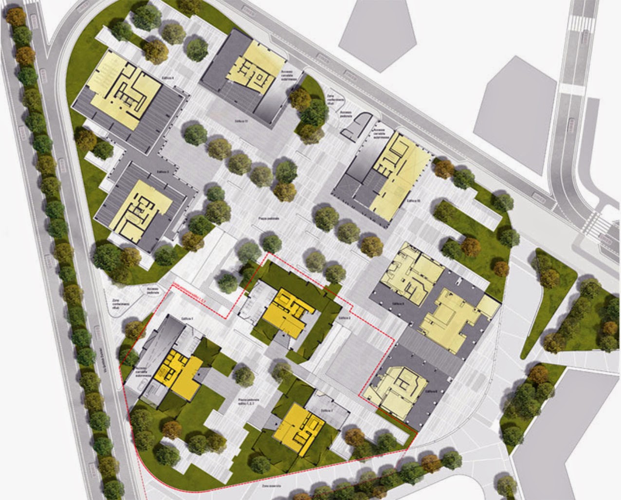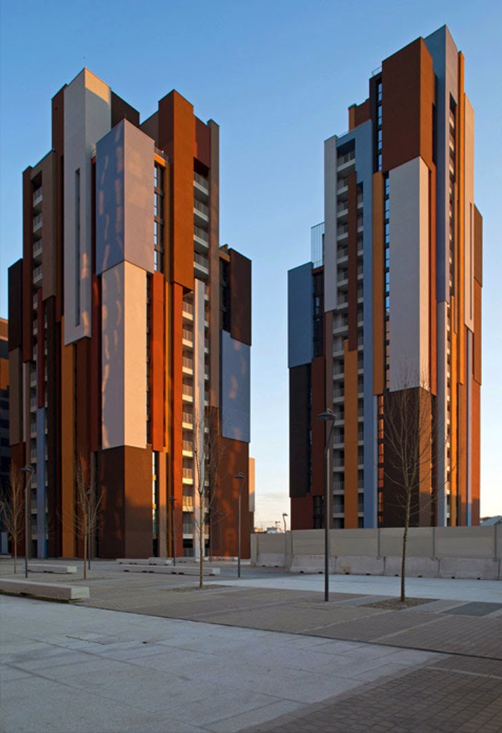 Le tre torri di Cucinella sono formate da parallelepipedi regolari ma sfaccettati e variegati nel loro colore, rendendoli molto particolari e allegri. Il sistema a gradoni permette di illuminare lo spazio centrale e i locali più bassi, aprendo viste e prospettive e garantendo terrazze di ampie dimensioni.