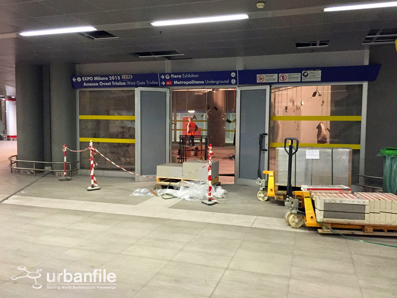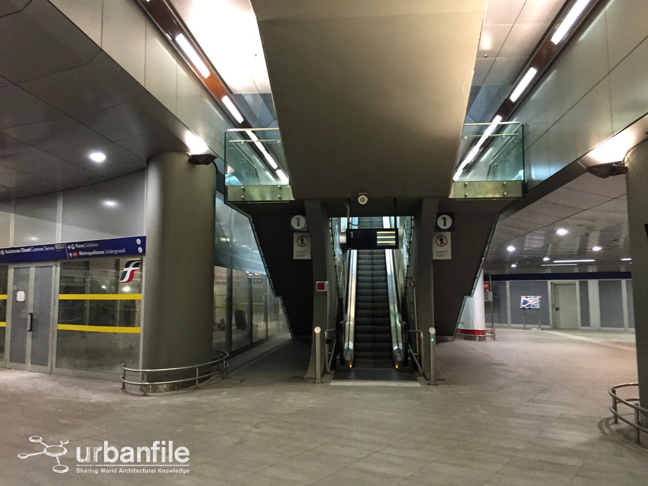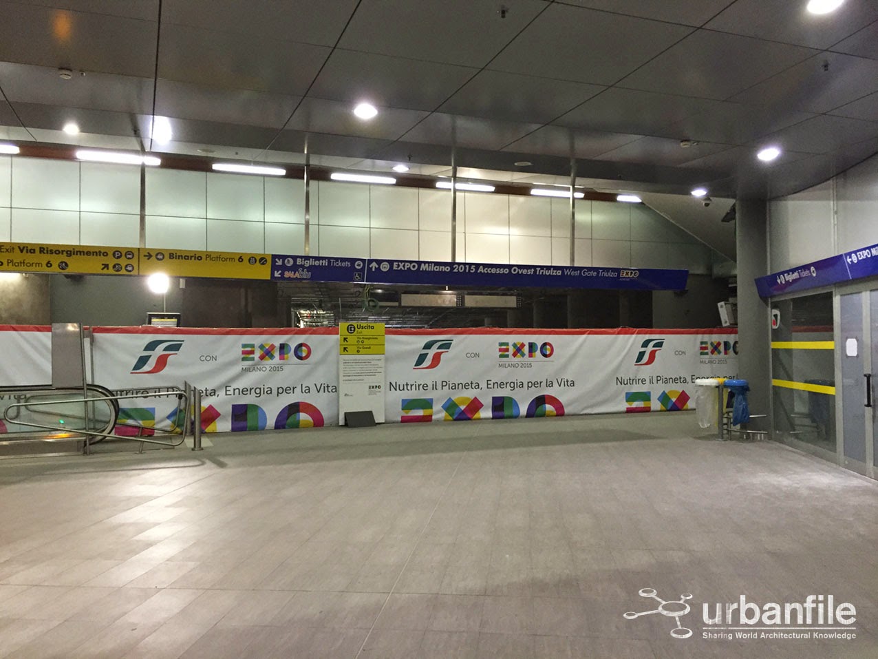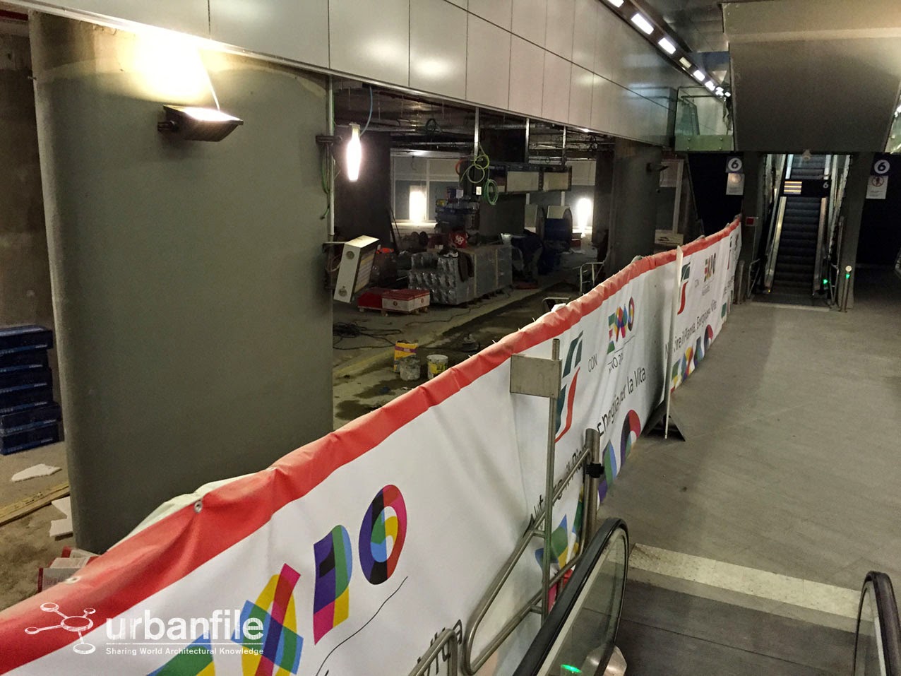 La stazione sottostante è molto bella, come d’altra parte lo era già prima, ora stanno lavorando ai negozi e punti infrmativi che animeranno lo scalo.L’uscita verso Mazzo di Rho, quella con la cupola in vetro è ancora chiusa e operai stavano ancora lavorandoci. Qui l’uscita e la cupola su via Achille Grandi, sono state spostate di qualche metro e ruotate di 180 gradi per consentire la costruzione della passerella che collegherà il sito Expo con la fermata della metropolitana 1 e con la Fiera.