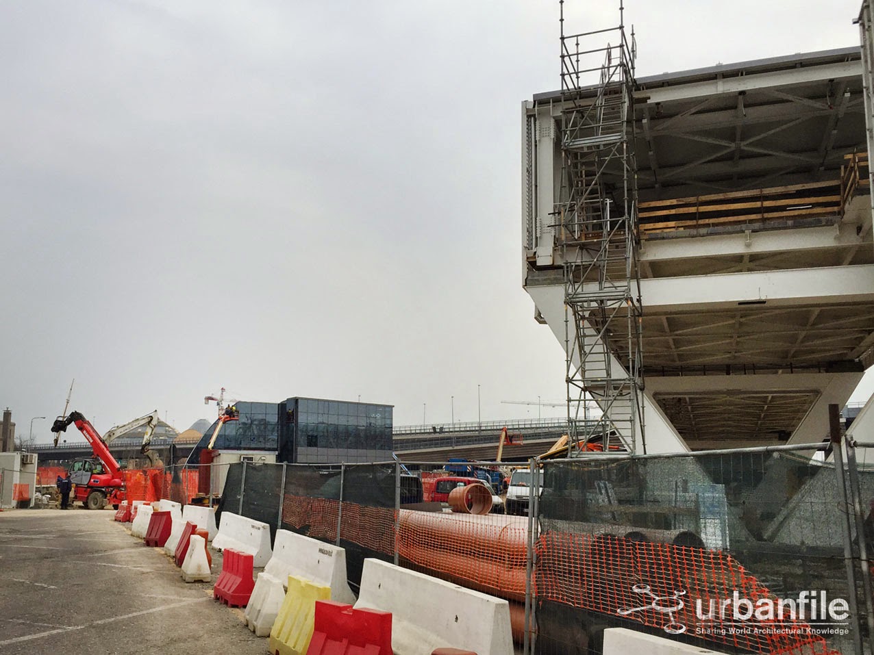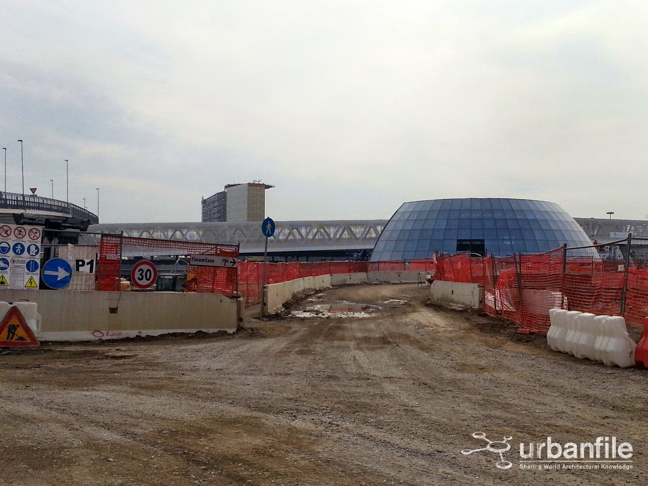 Di seguito le immagini prima e durante i lavori per lo spostamento della “cupola” d’ingresso alla stazione ferroviaria Rho Fiera Expo
